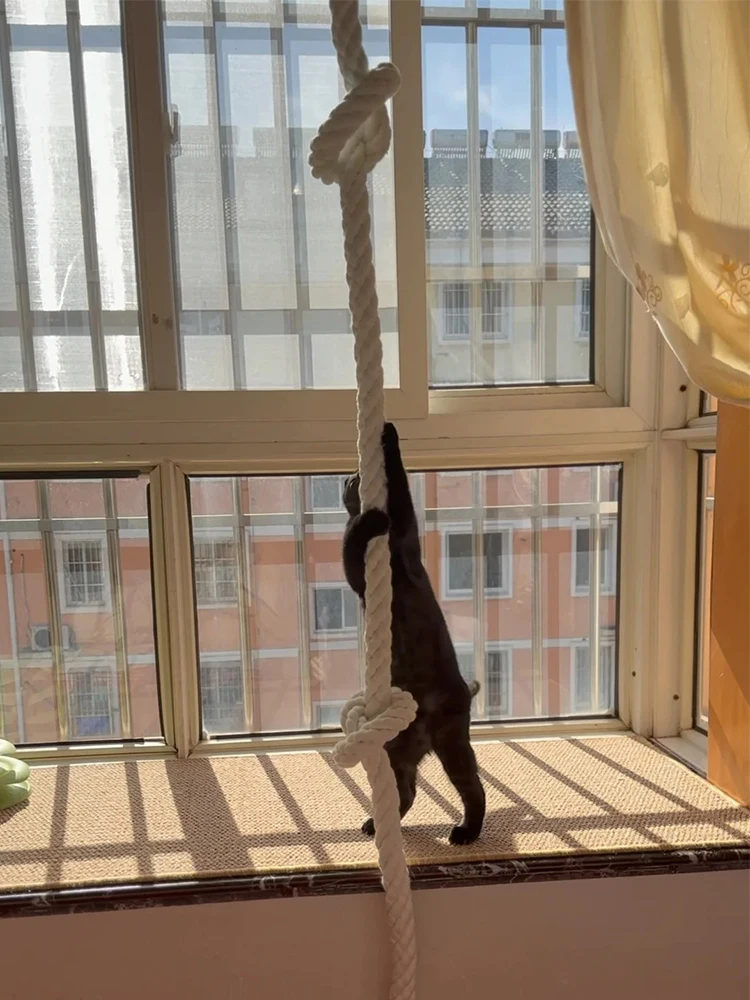 This cat climbing rope is designed to provide your feline friend with a fun and engaging way to exercise and explore their environment. Measuring approximately 3 meters in length, it is perfect for mounting on the ceiling, allowing your cat to climb and play safely. This climbing rope is an excellent addition to any cat’s play area, promoting physical activity and mental stimulation.