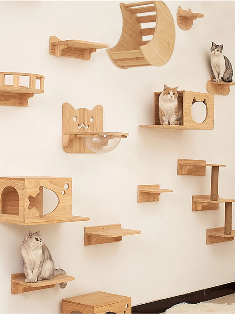 This cat climbing shelf is designed to provide your feline friend with a perfect space to climb, jump, and relax. It encourages physical activity, helping to keep your cat healthy and fit while also saving space in your home.