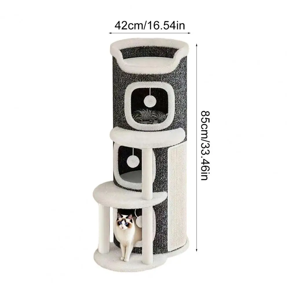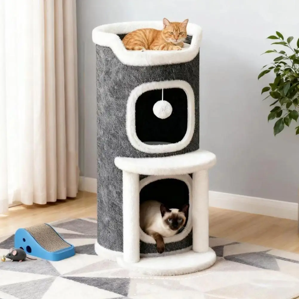 This Cat Climbing Tower is designed for multi-cat families, featuring a vertical barrel structure that saves space while providing multiple levels for your cats to explore and play. Its compact design is perfect for small living spaces, allowing several cats to enjoy their own areas without taking up too much room.