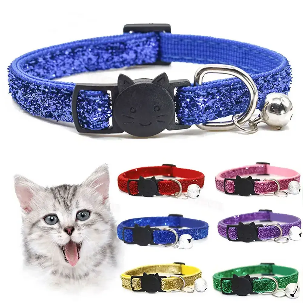 Cat Collar Pet Cat Collar with Bell Adjustable Glitter Velvet Safety Buckle