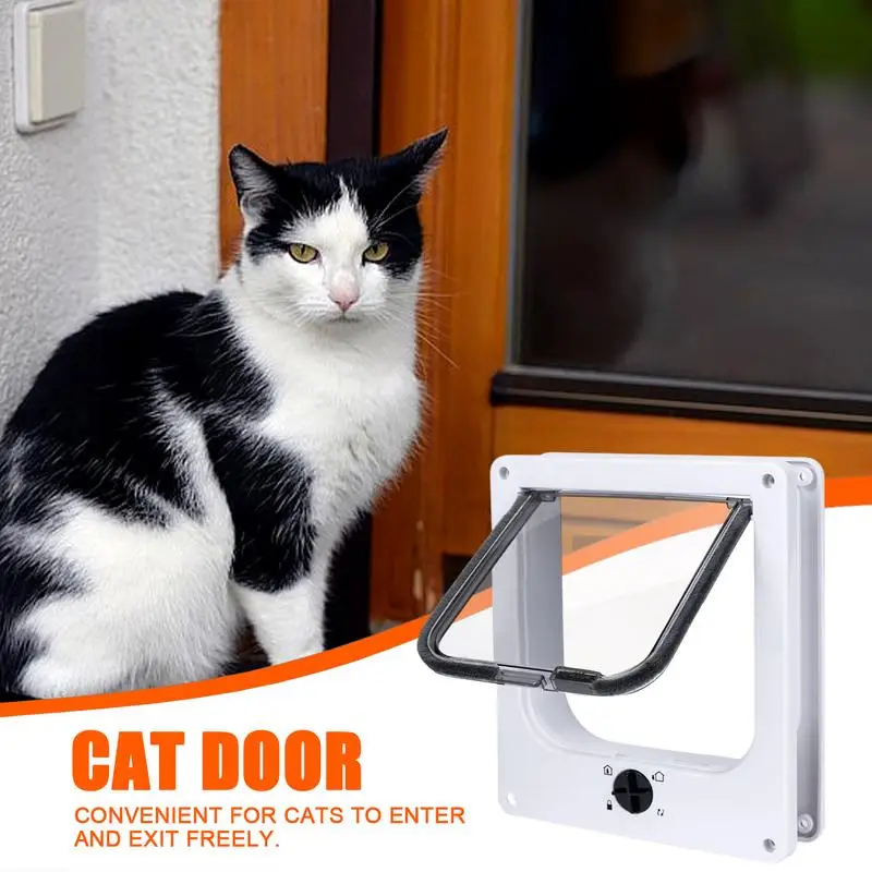 Cat Flap Door with 4 Way Security Lock ABS Plastic Gate for Small Pets