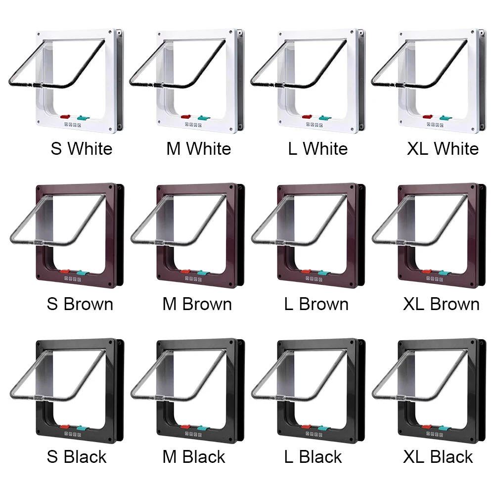 Cat Flap Door with 4 Way Security Lock Puppy Kitten Safety In and Out Pet Door
