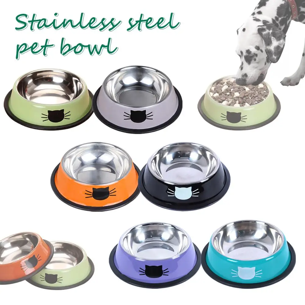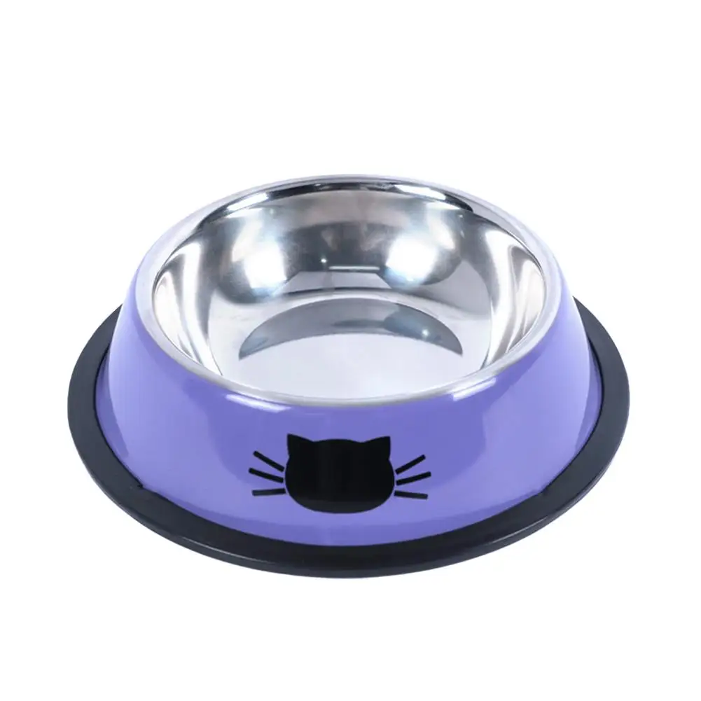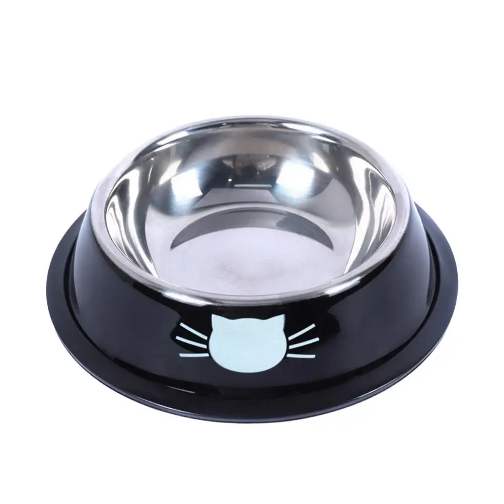 Cat Food Bowl Steel Kitten Feeder Water Bowl Non-Slip Rubber Base Accessories