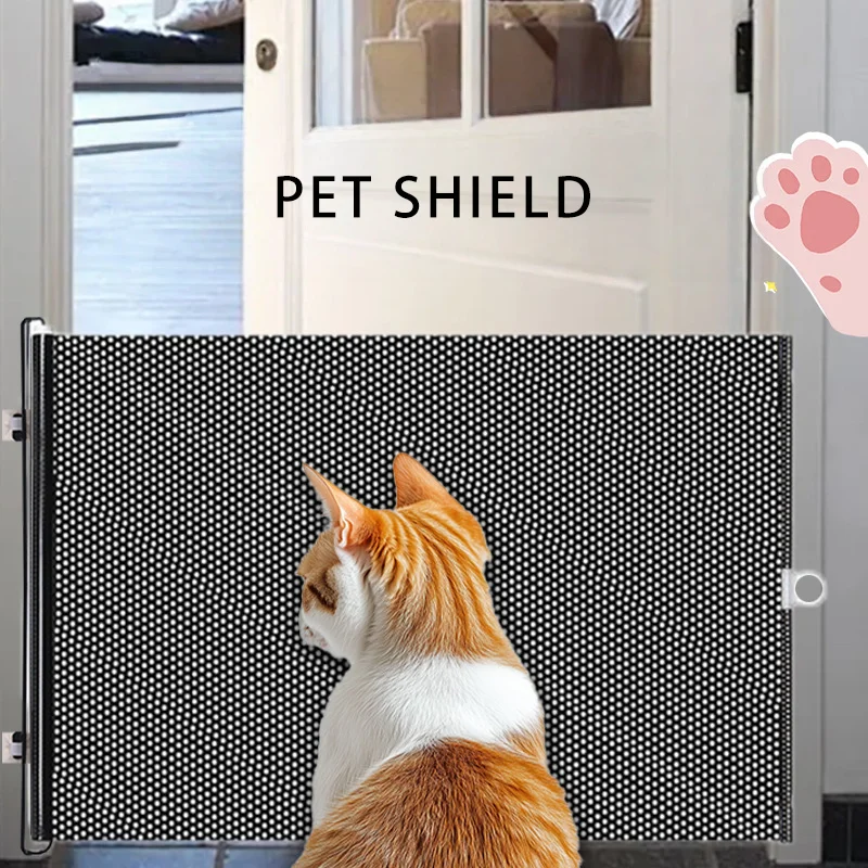 This pet partition features a cat hole and a cat door, designed to be folded and extended for versatile use. It is ideal for areas such as stairs, bedrooms, balconies, and kitchens, effectively preventing pets from running out.