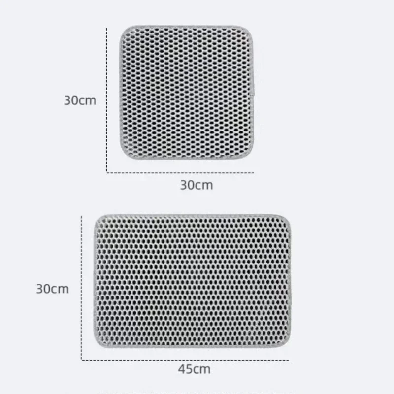 - Upper layer features a hexagonal hole design to allow litter to fall through while preventing spills.
