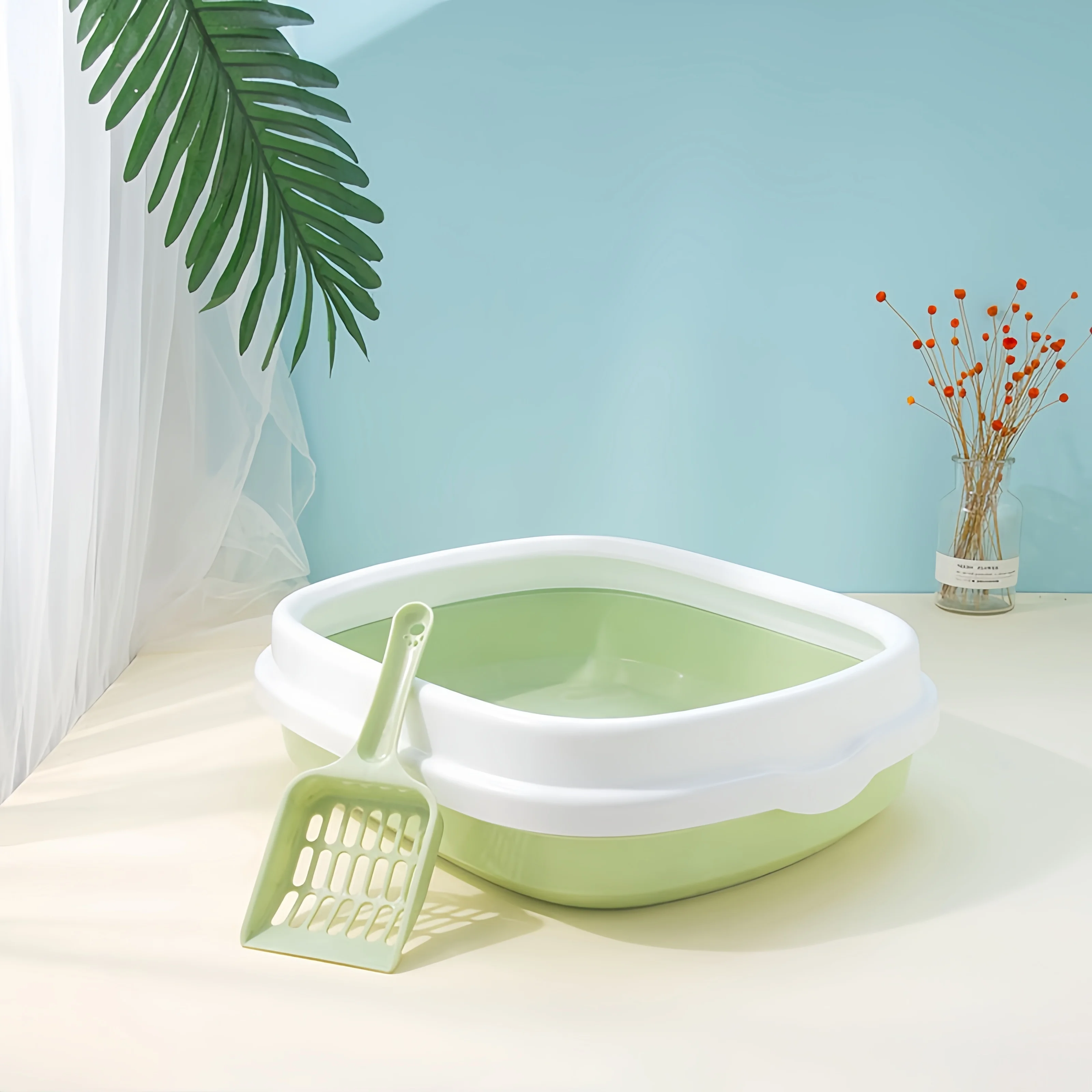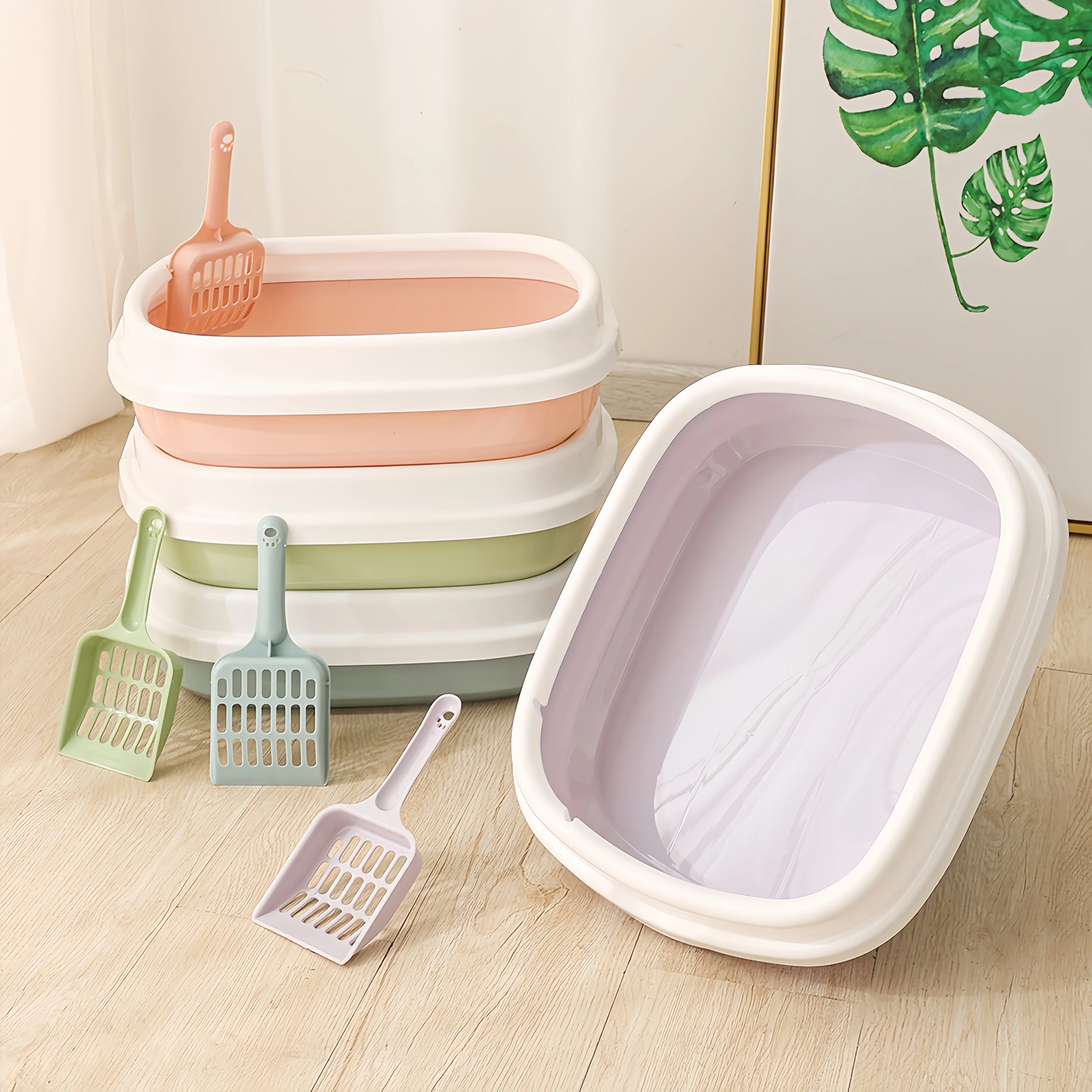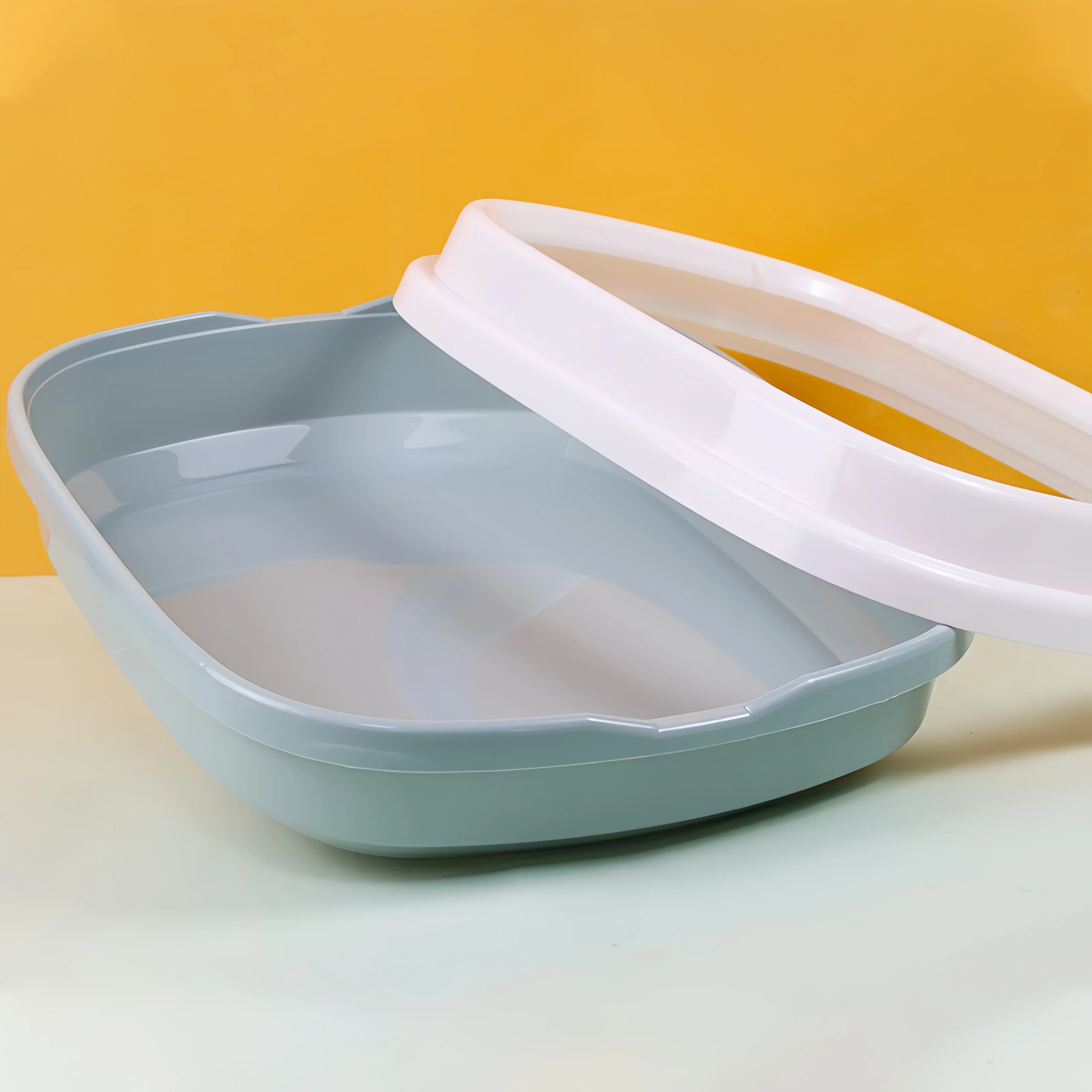 This portable litter box is designed for small animals such as cats and rabbits. It features a semi-closed design that helps contain litter and odors, making it a practical choice for pet owners. The removable tray allows for easy cleaning, ensuring a hygienic environment for your pets.