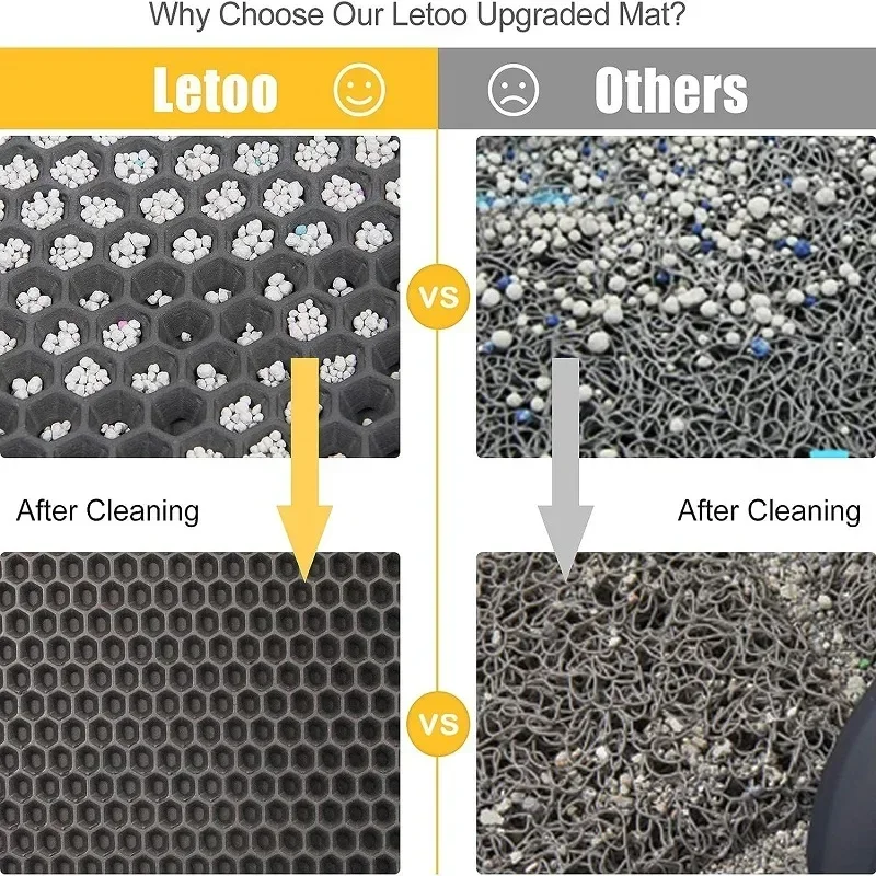 - Upper layer features a hexagonal hole design to prevent litter from scattering and to provide a soft touch for your cat’s paws.