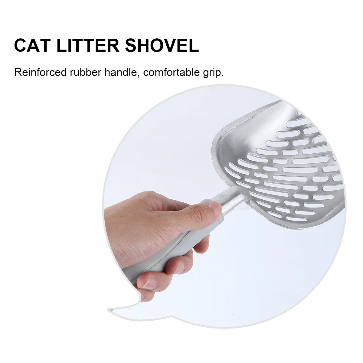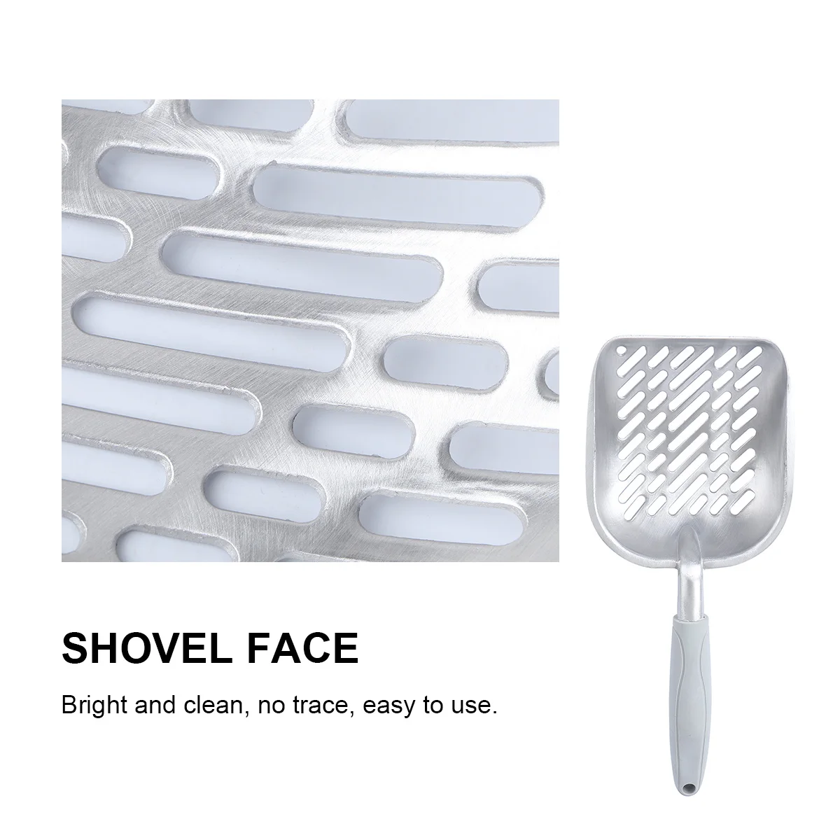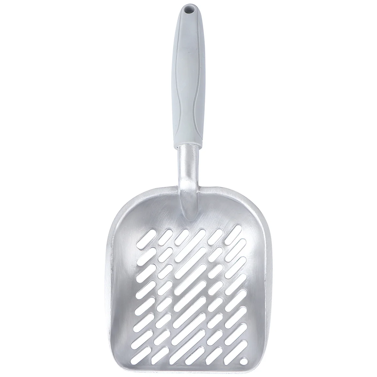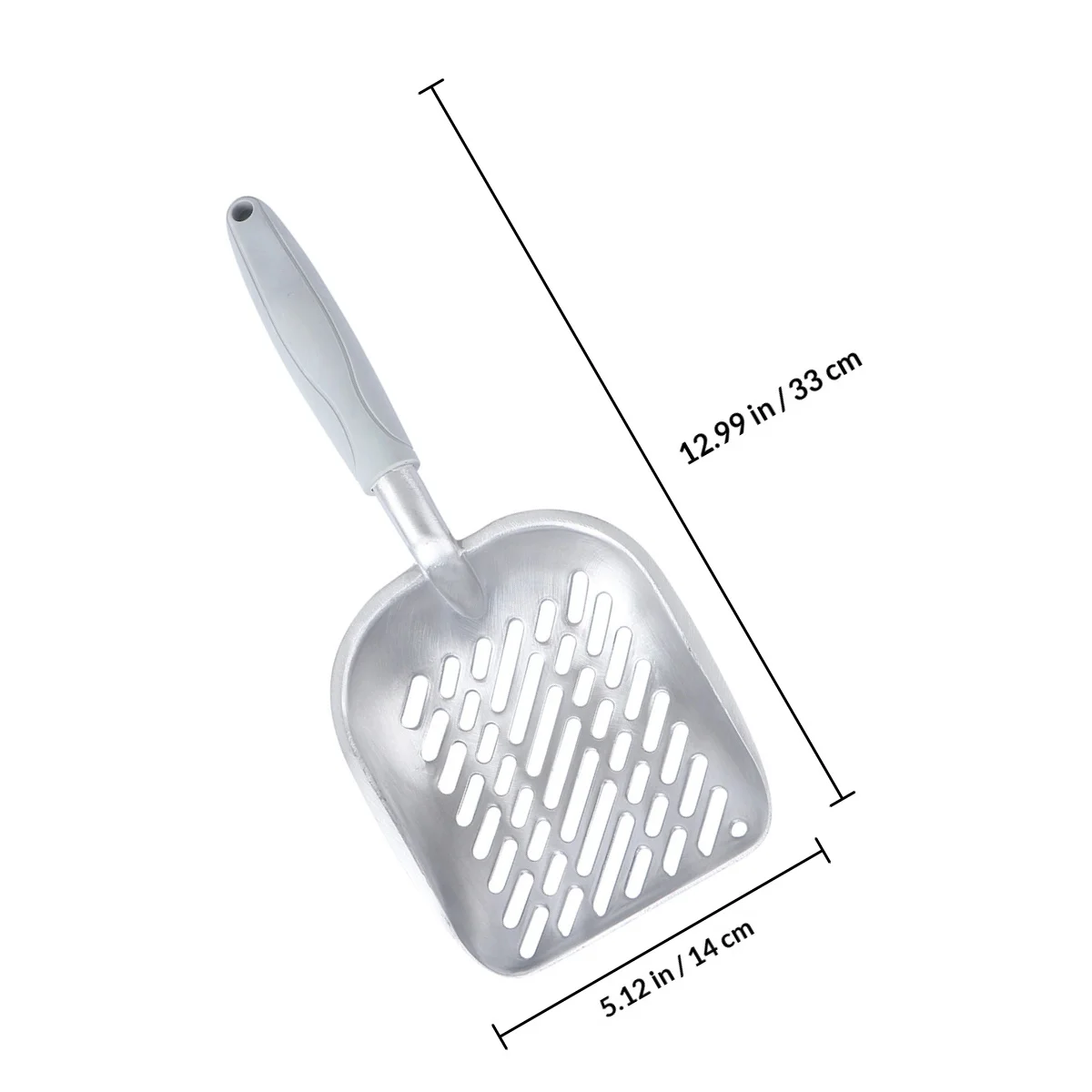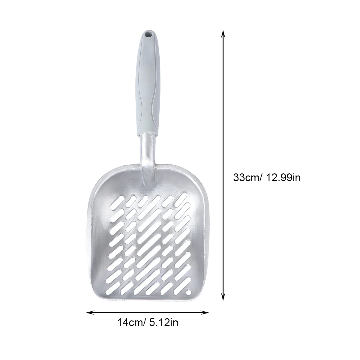 Cat Litter Scoop Grey Heavy Duty Metal Long Handle Pet Scooper High Efficiency
