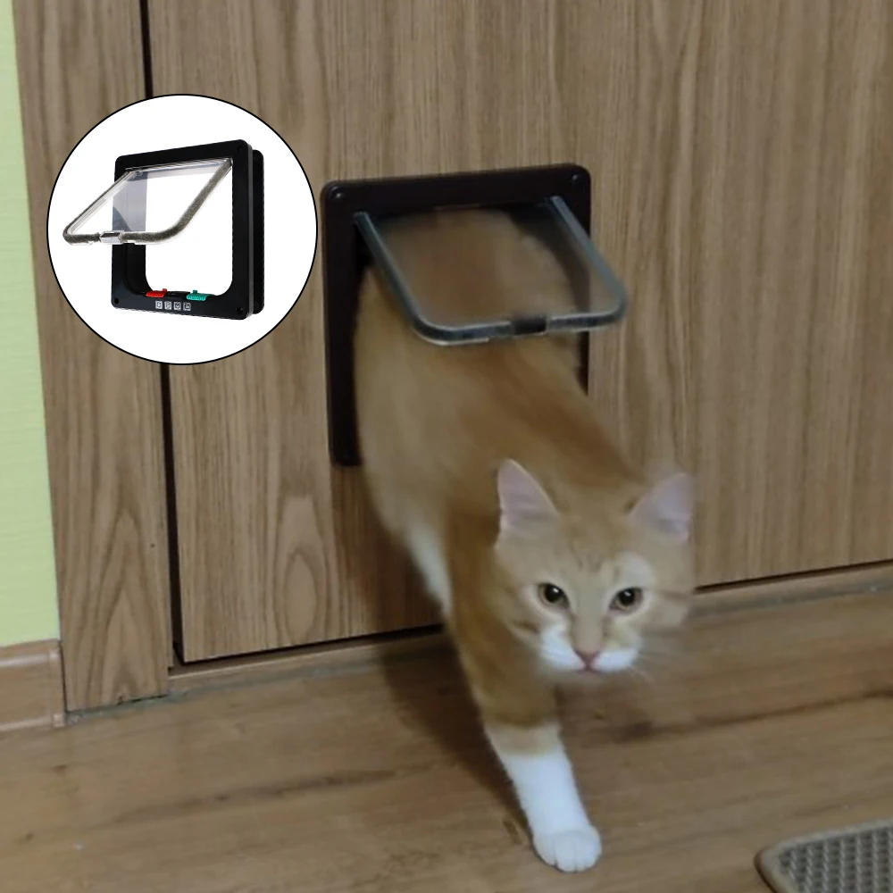 Cat Puppy Safety Gate is designed for small pets, featuring a secure 4-way lock and a flap door made from durable ABS plastic. This pet door allows your cat or dog to move freely while keeping your home safe and secure.