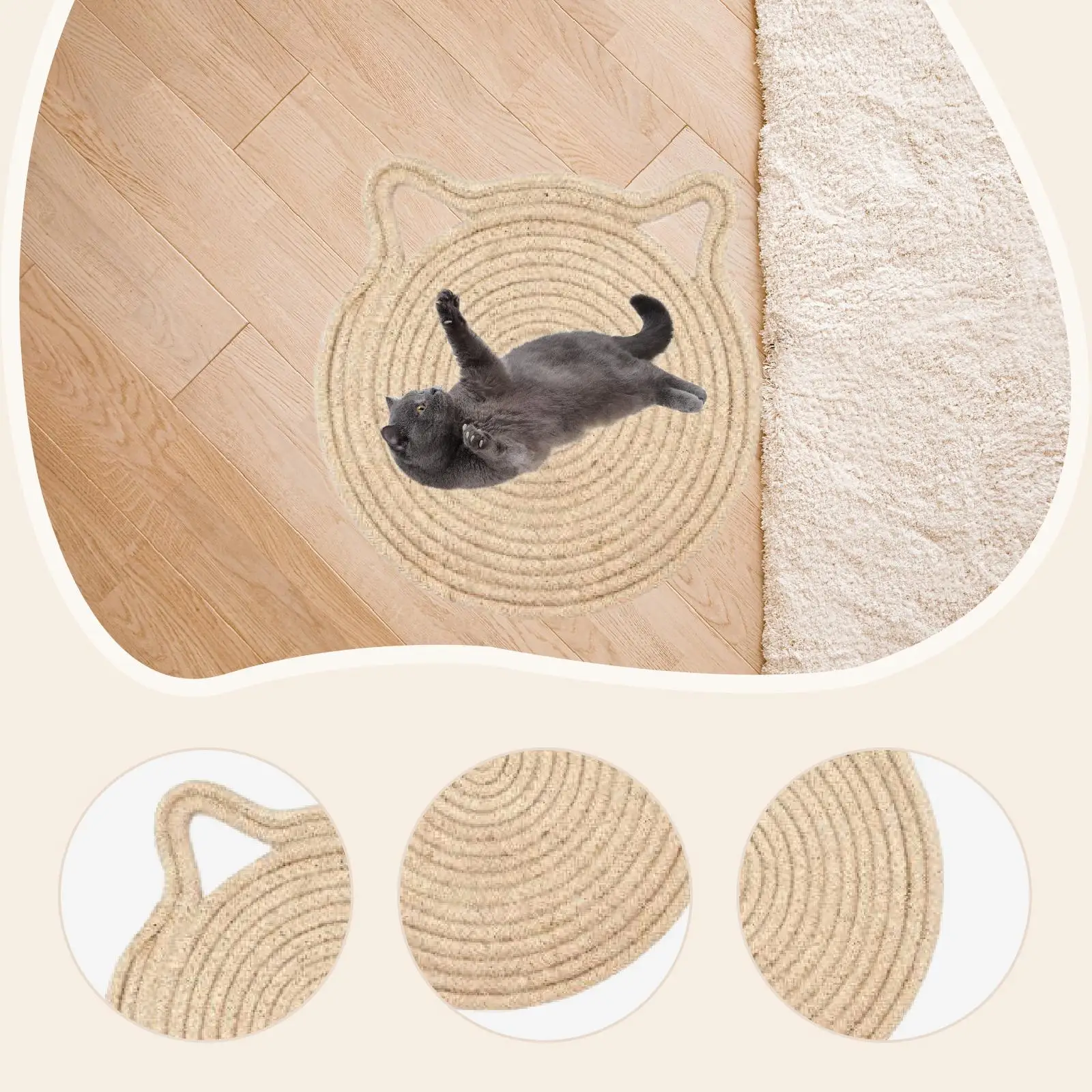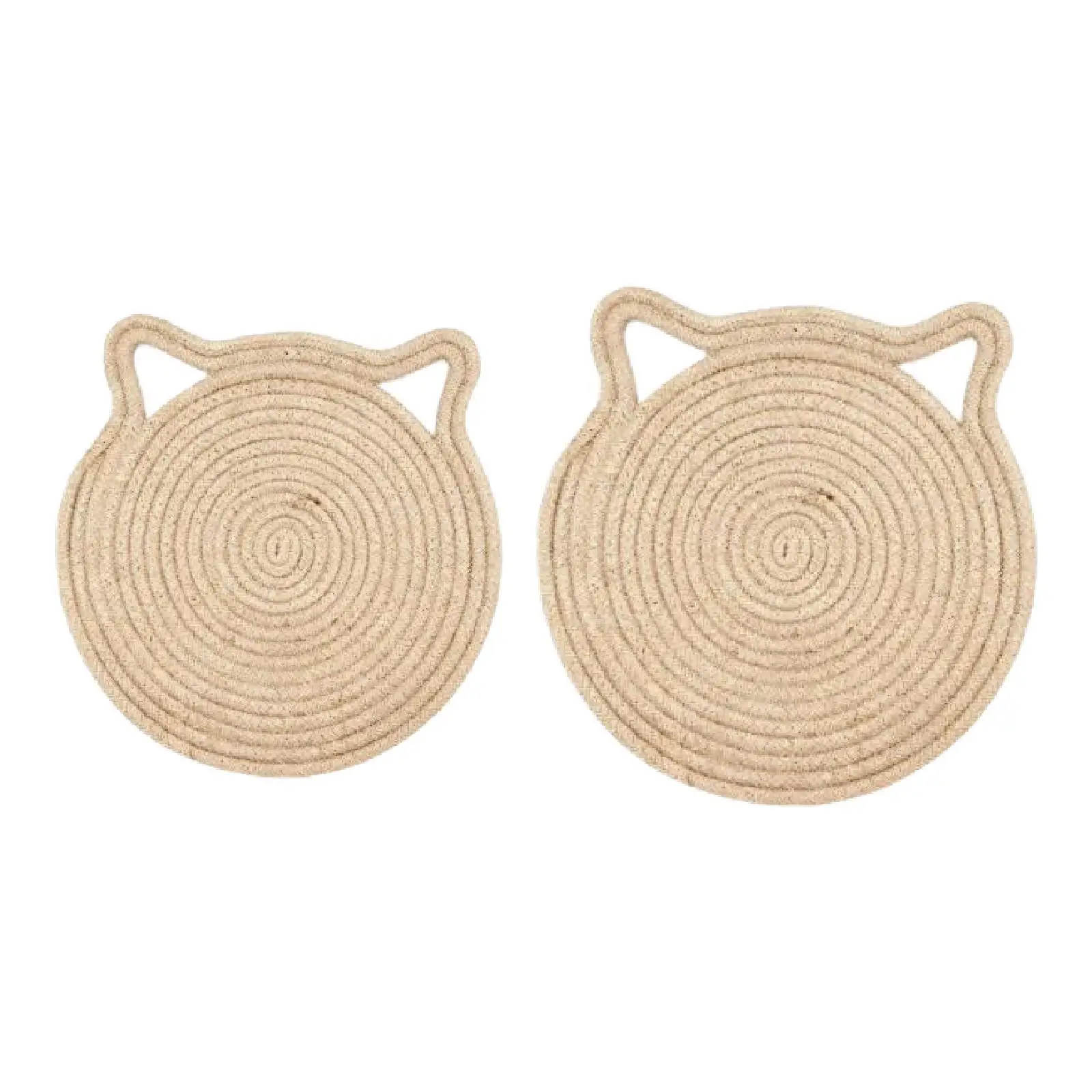 This round woven cat scratching pad features a charming cat head design, making it an attractive addition to your home decor while providing a fun and engaging experience for your cat. The design encourages your feline friend to scratch and play, keeping them active and entertained.