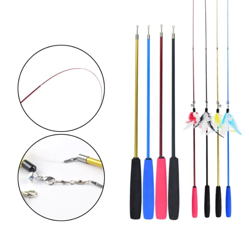Cat Teaser Wand Telescopic Fishing Pole Interactive Stick Teaser Toy