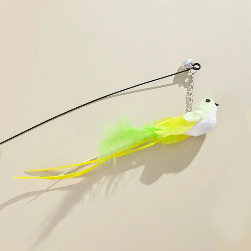 This interactive cat teasing stick features a telescopic pole designed to engage your cat in playful activities. The stick simulates the movement of birds with its feather attachment, enticing your feline friend to jump and chase. The added bell sound enhances the play experience, making it an exciting toy for your pet.