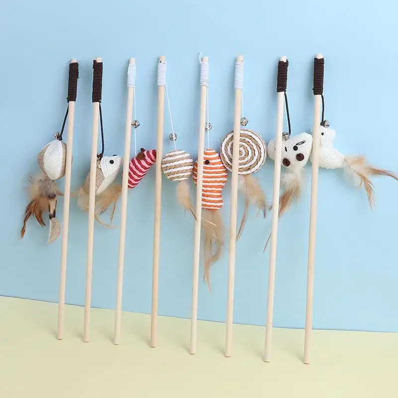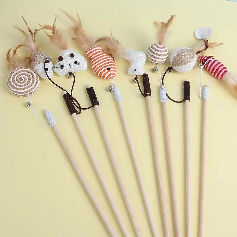 This interactive cat toy features a handmade design with a wooden pole and a cute simulation mouse, perfect for engaging your feline friend. The combination of cotton and linen materials ensures durability while providing a fun play experience for your cat.