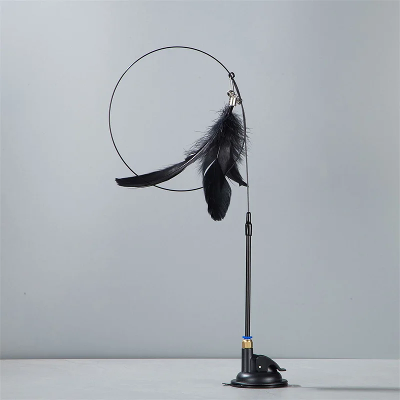 This cat teaser stick is designed to provide endless fun for your feline friend. With an extended rod and a durable construction, it features a bell and a replaceable feather head that will keep your cat engaged and entertained. The suction cup allows for easy attachment to various surfaces, making it a versatile toy for playtime.