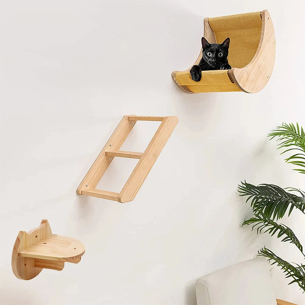 Cat Wall Mounted Furniture Climbing Shelves Scratching Post Hammock Ladders Bridge