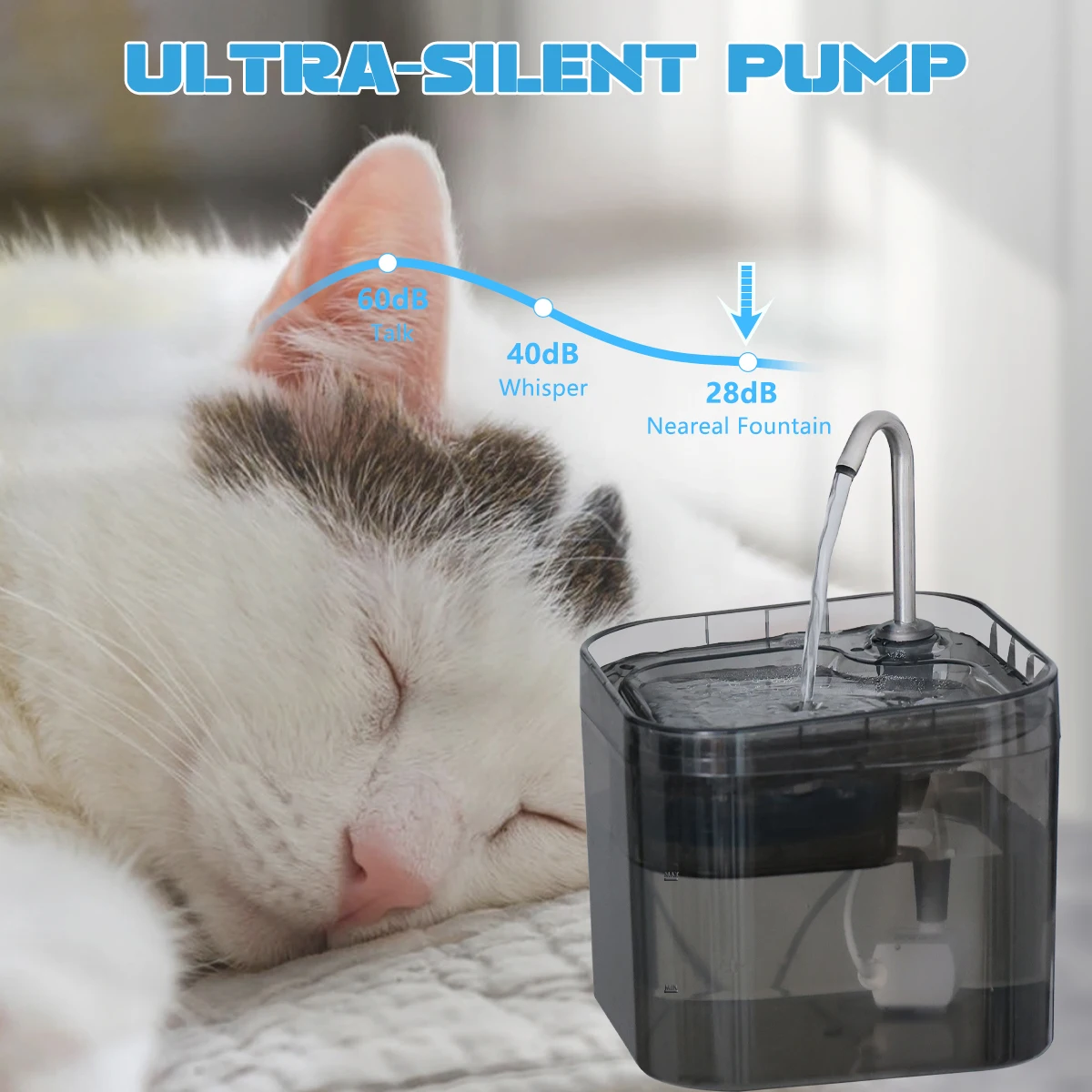 Cat Water Fountain Pet Water Dispenser for Cats Dogs 2.2L Ultra Quiet Pump