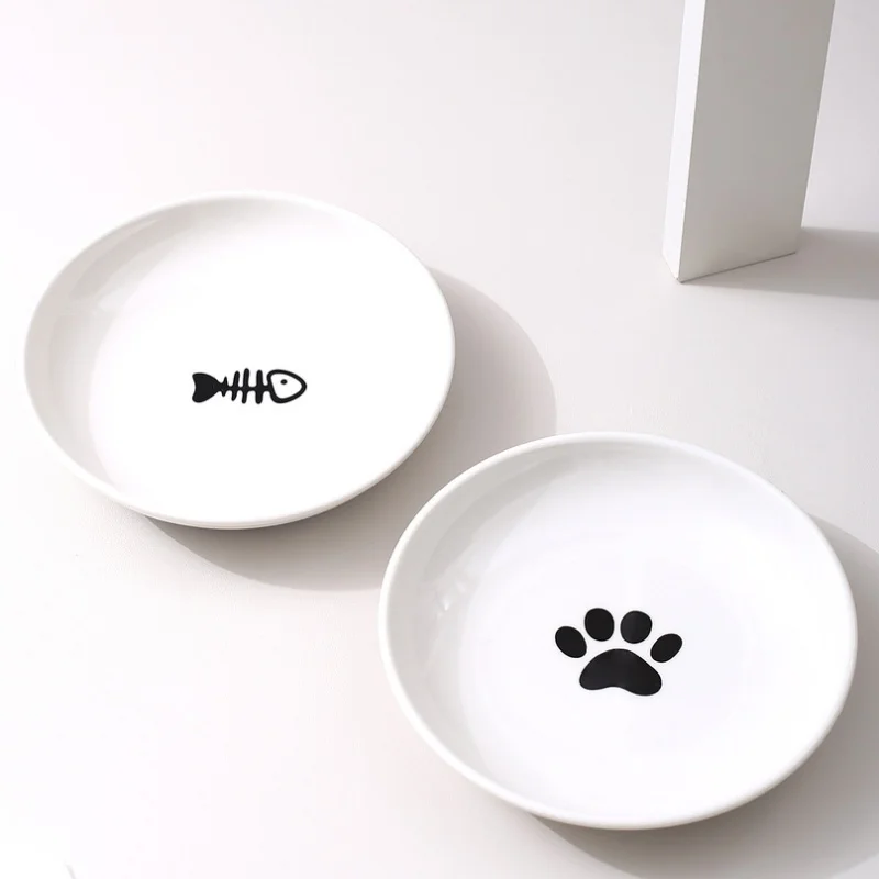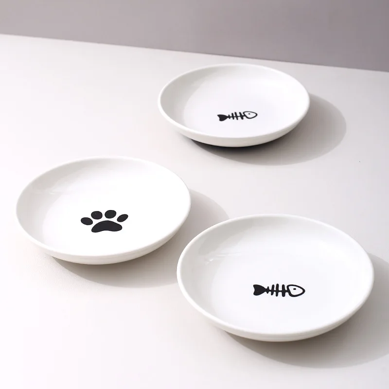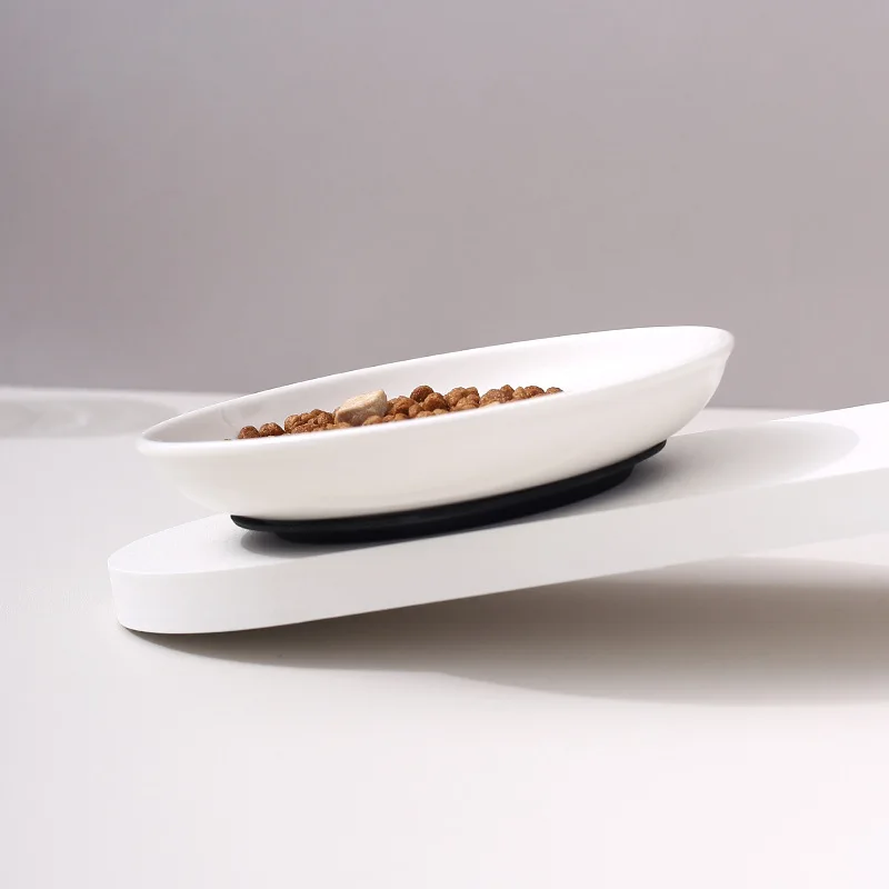 Ceramic Pet Bowl With Silicone Pad Non Slip Cat Dish Food Basin Tray