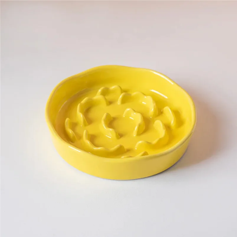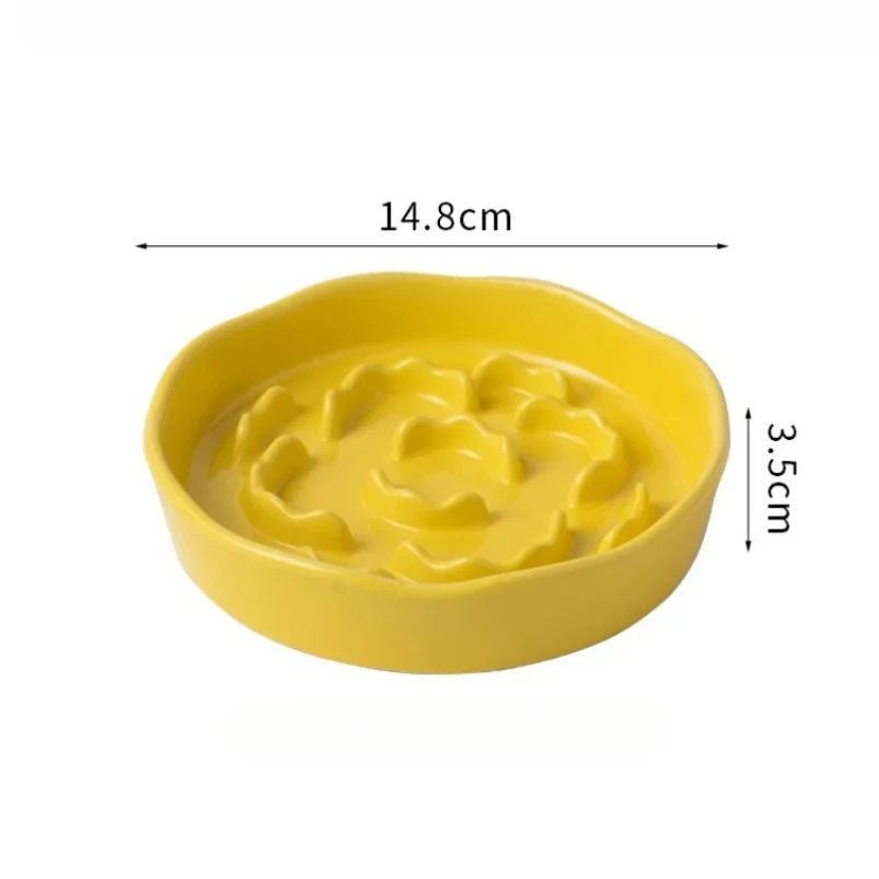 This Ceramic Slow Food Bowl is designed for cats and dogs, featuring a high-footed design that helps prevent choking and makes it difficult to knock over. It is perfect for promoting healthy eating habits in your pets.