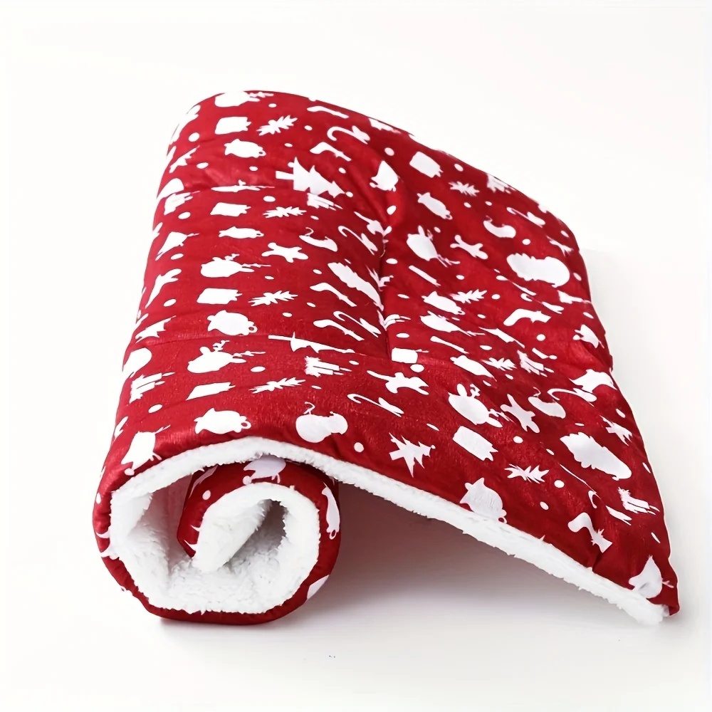 Christmas Thickened Pet Bed Mat Cozy Red Cartoon Print Cat Dog Bed Durable Polyester