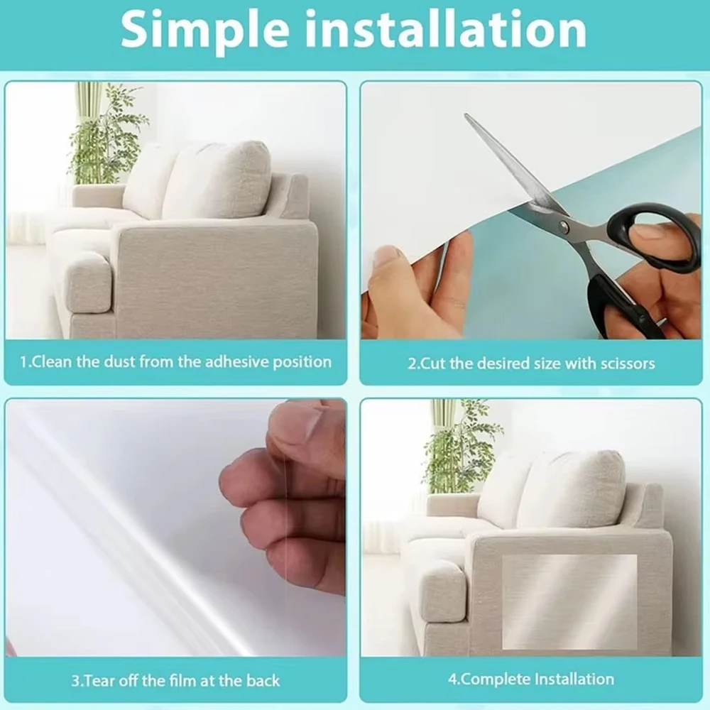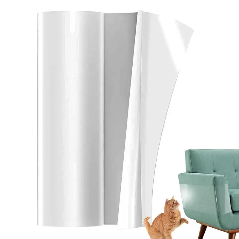 This clear cat scratch guard is designed to protect your furniture from scratches caused by your pets. It is simple to apply: just peel off the backing and stick it to the surfaces you want to protect, such as sofas, chairs, and table legs. The guard is removable and will not leave any residue, allowing you to maintain the beauty of your furniture while keeping it safe from claw damage.