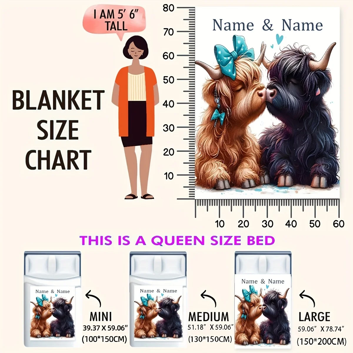 - Package Content: 1 x Customized Highland Cow Blanket.