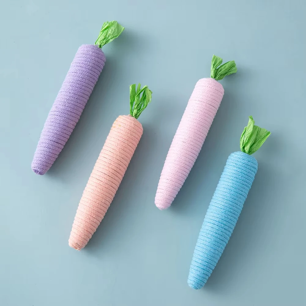 Cute Carrot Cat Toy Colorful Cotton Rope Chew and Scratch Set with Squeaker