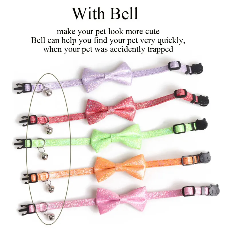 Cute Pet Cat Collar with Bell Bow Breakaway Safety Buckle for Small Pets