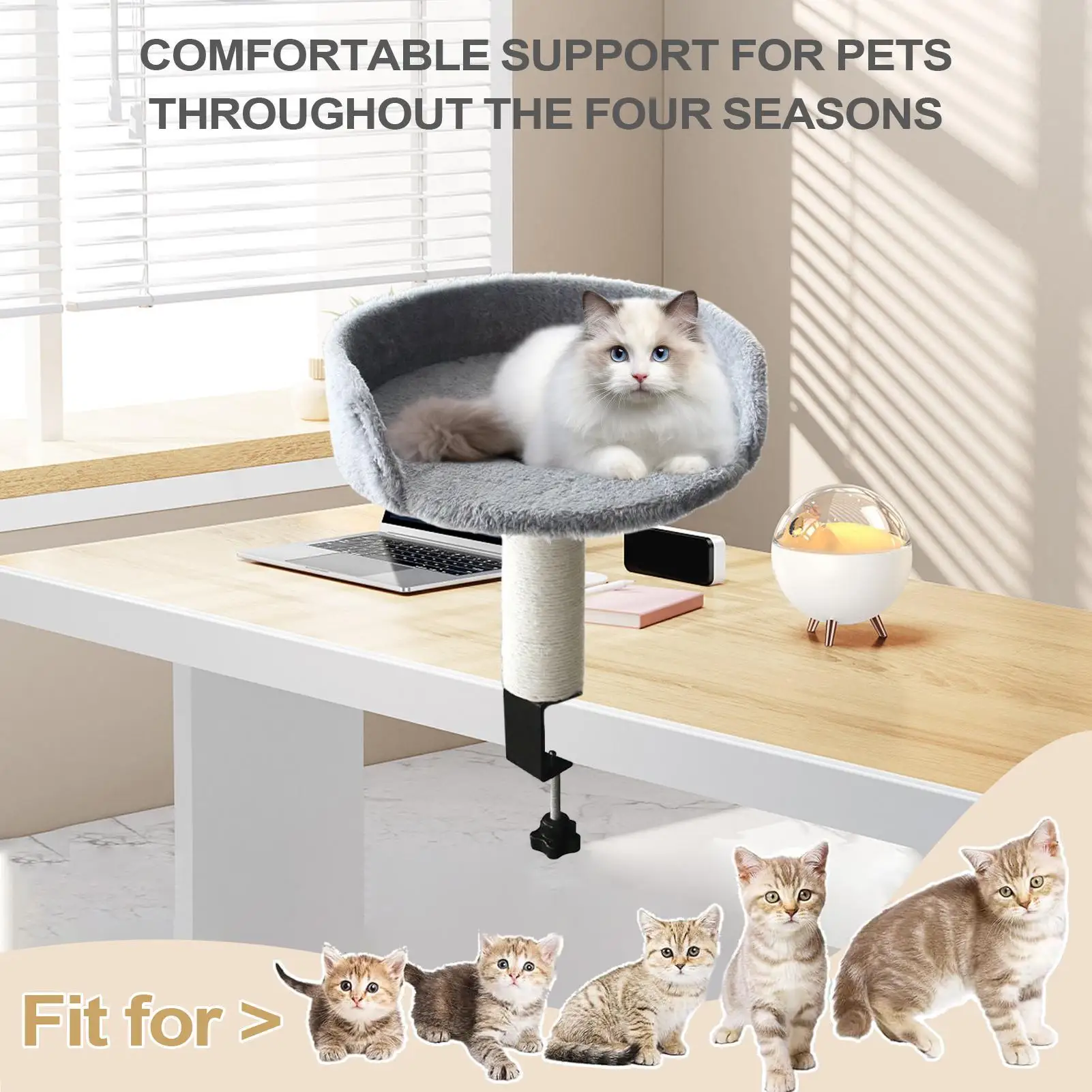 This desk clamp cat bed is designed to provide a secure and comfortable resting place for your feline friend. With its innovative wall-mounted design, it saves space while offering an elevated perch for your cat to relax. The soft pad attachment ensures a cozy nest for your pet, making it perfect for both home and office environments.