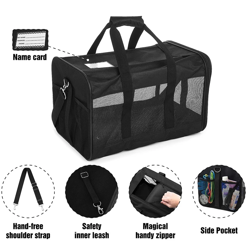This soft-sided pet carrier bag is designed for both cats and small dogs, making it an ideal travel companion for pet owners. Its breathable design ensures comfort for your pet during outings, while the spacious interior allows for movement and relaxation.