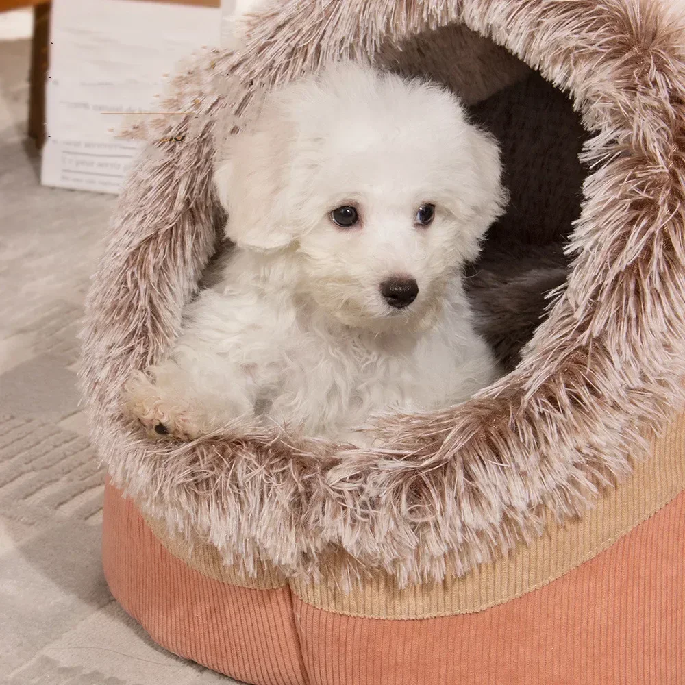 Dog Cat Kennel Comfortable Fall Winter Striped Long Hair Portable Nest Warm Thickened Pet Kennel