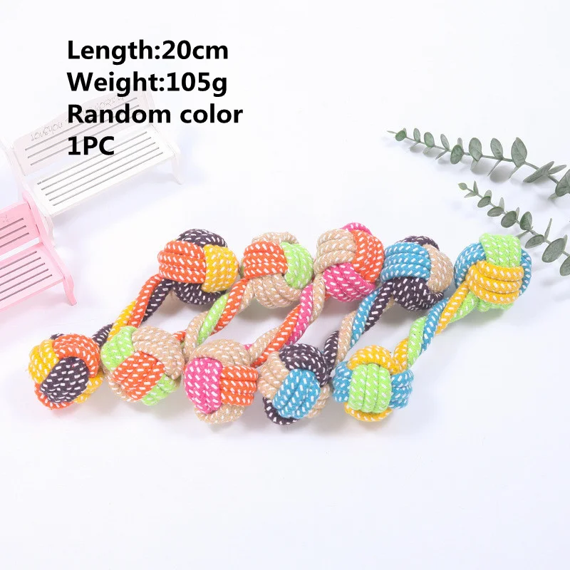 This interactive chewing rope ball toy set is designed for small to medium dogs, providing them with hours of fun and exercise. Made from natural cotton, these toys are durable and washable, making them perfect for tug of war games and chewing activities.