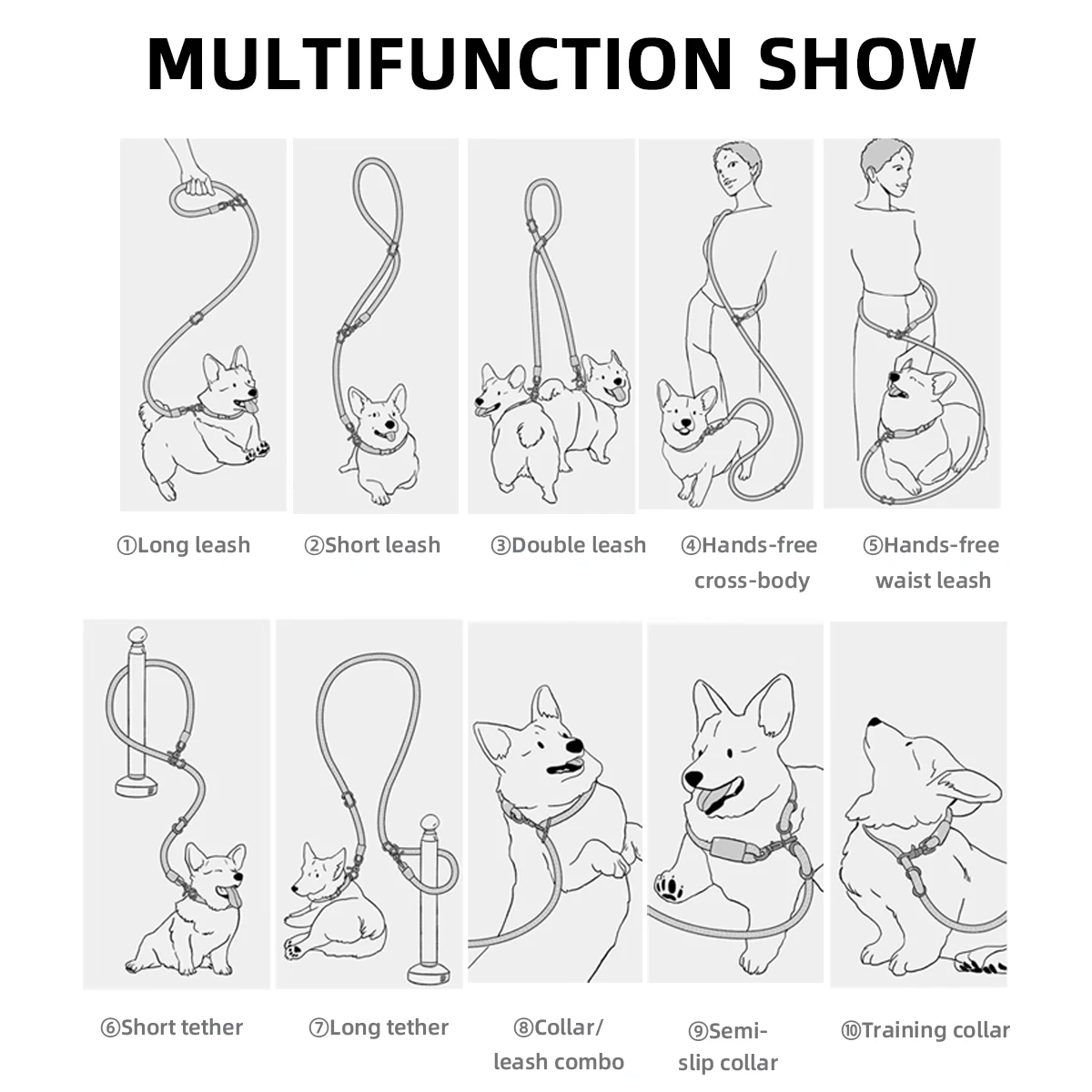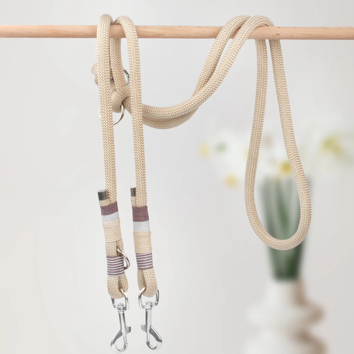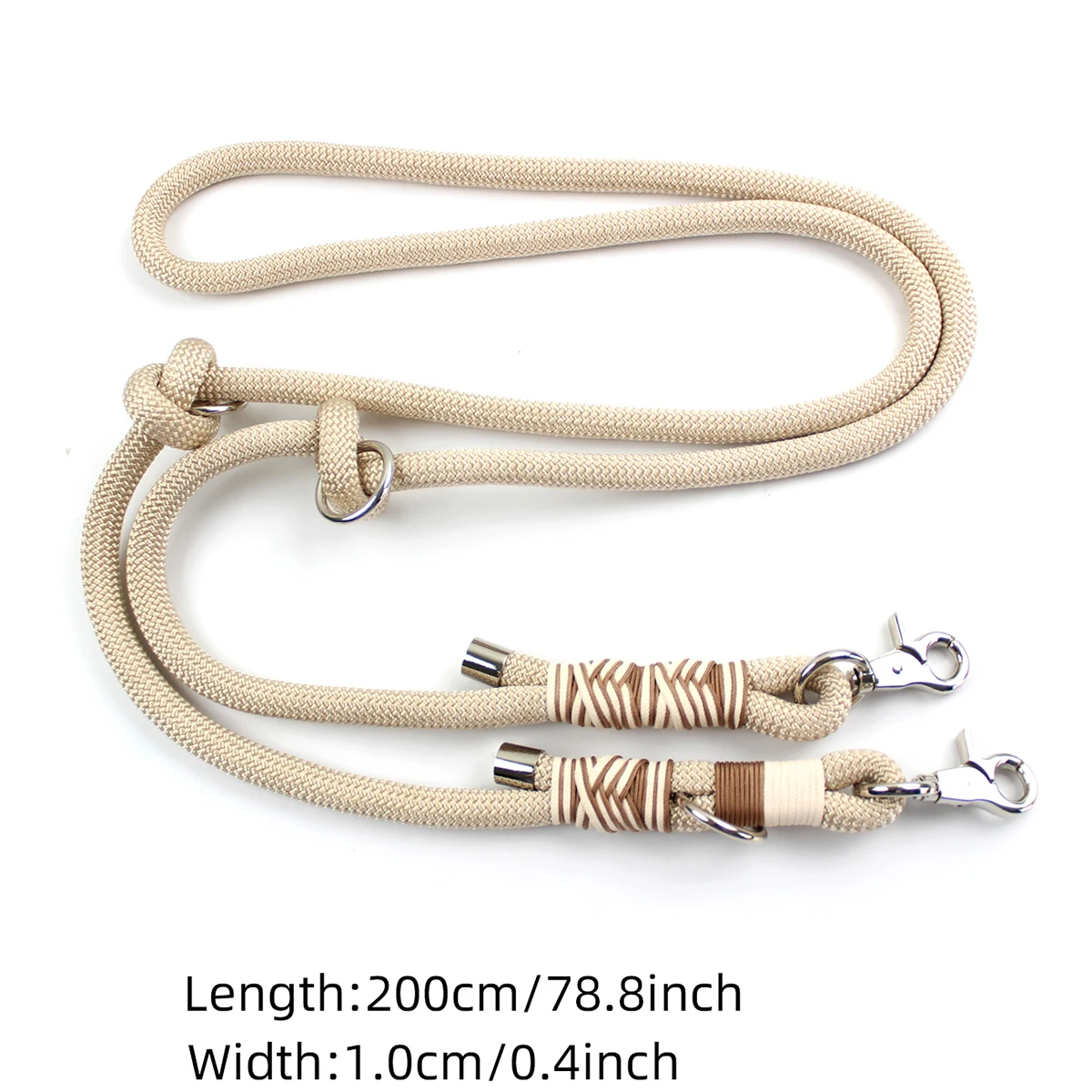 This multifunctional hand-woven leash is designed for outdoor walking with medium and large dogs. It features a solid color and double buckles for added convenience and security, making it an ideal choice for dog owners who value both style and functionality.