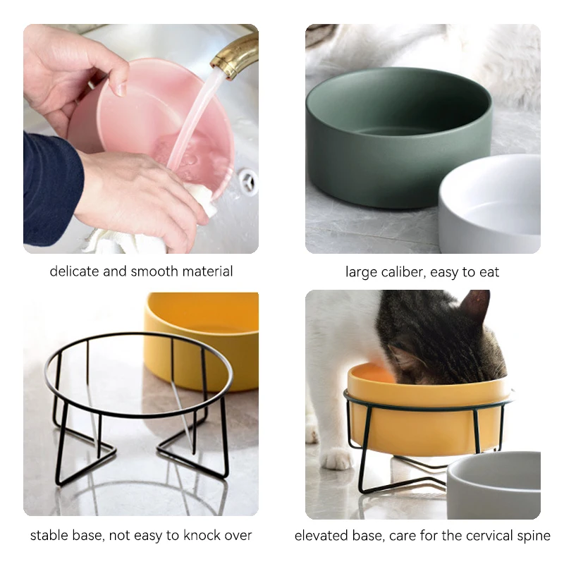 Introducing the Double Cat Food and Water Bowls with Stand, designed for both cats and small dogs. These ceramic feeding accessories provide a stylish and functional way for your pets to eat and drink comfortably.