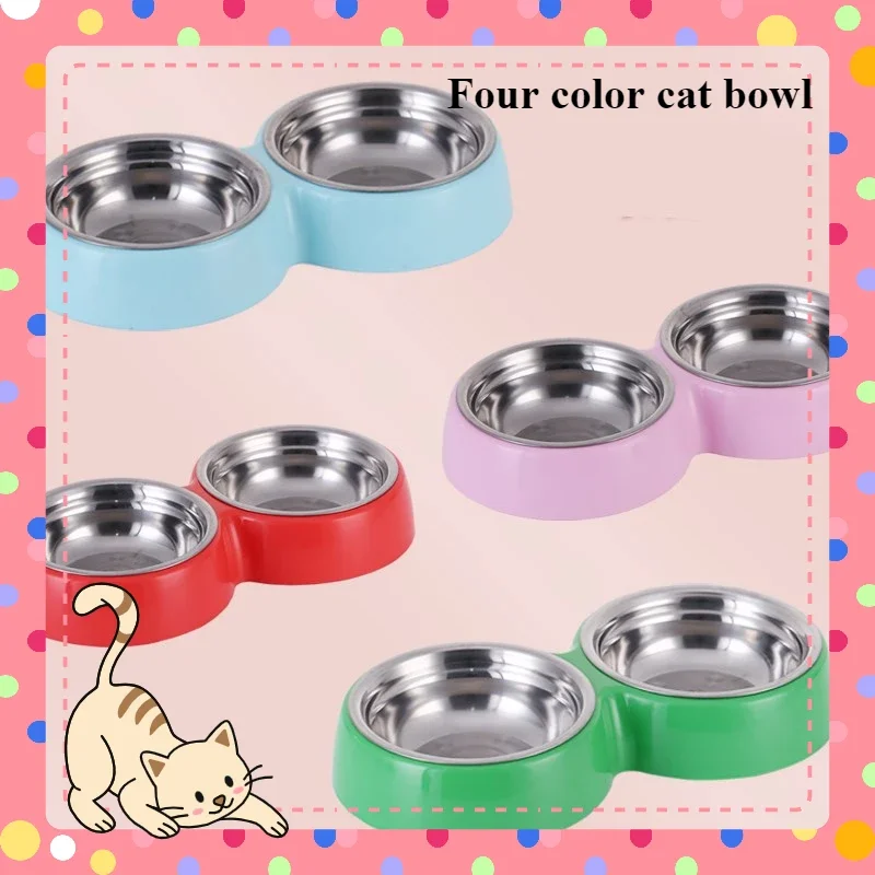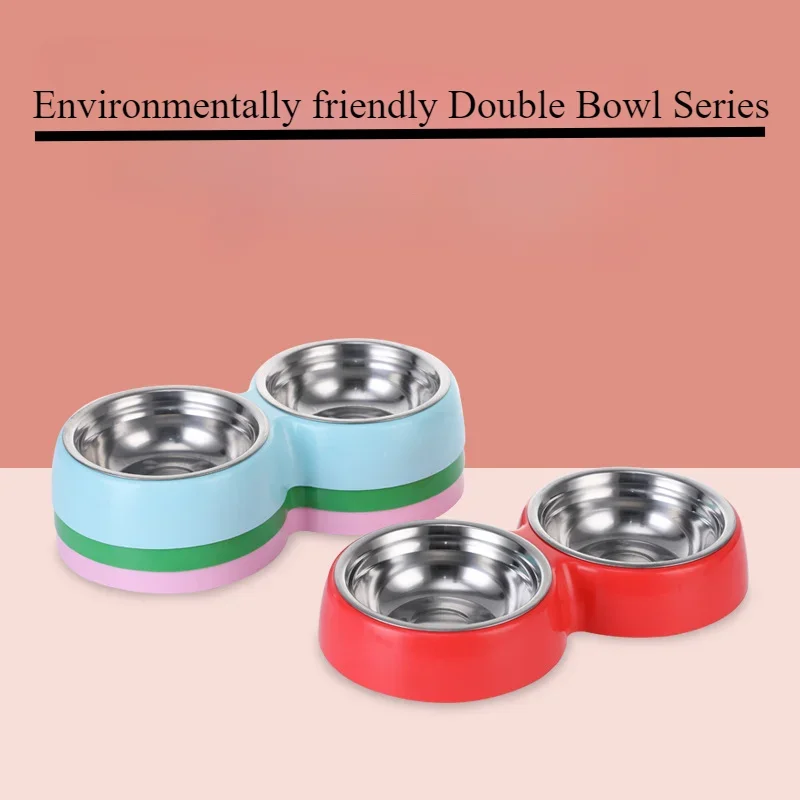 Double Pet Food Bowl Stainless Steel Drinkware Pet Drinking Food Dog Food Puppy Feeding Supplies