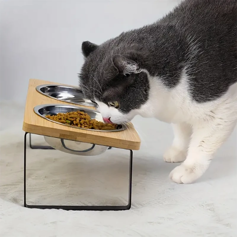 This set includes two elevated slanted plates designed specifically for indoor cats. The unique slanted design allows for easy access to food, making mealtime more comfortable for your feline friends.