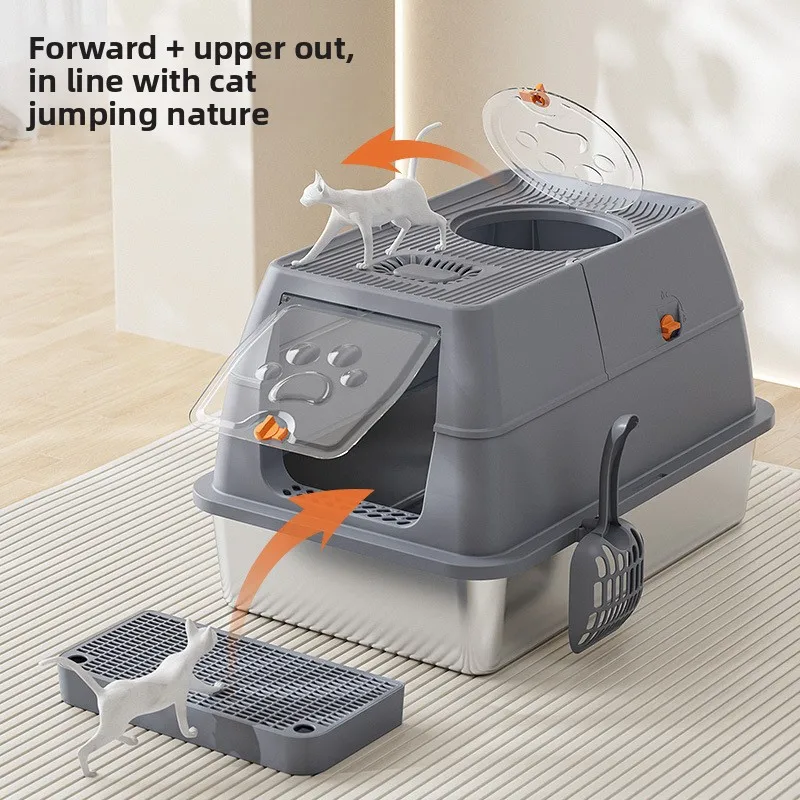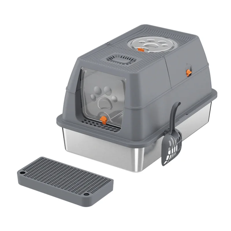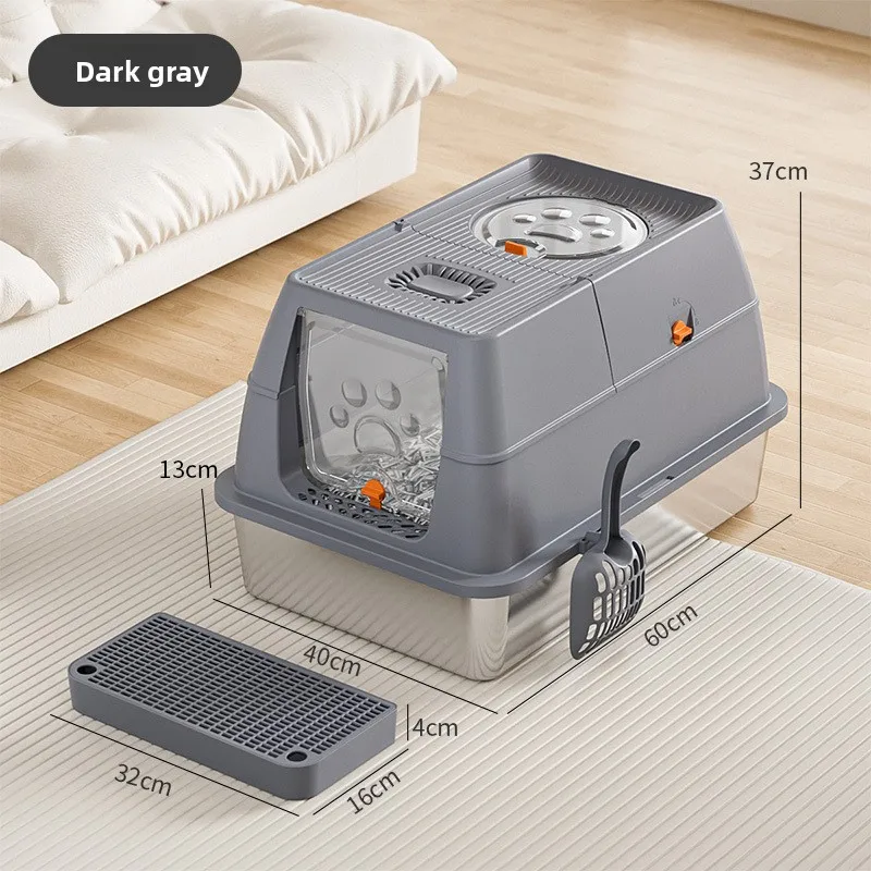 Stainless Steel Enclosed Cat Litter Box Removable High Sided Anti-splash Design