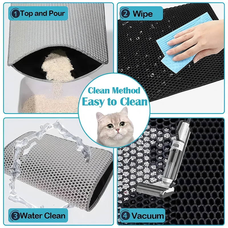 The Eva Cat Litter Mat is designed to provide a clean and comfortable space for your pets. With its innovative double-layer structure, this mat effectively captures litter and prevents messes, making it an essential accessory for any cat owner.