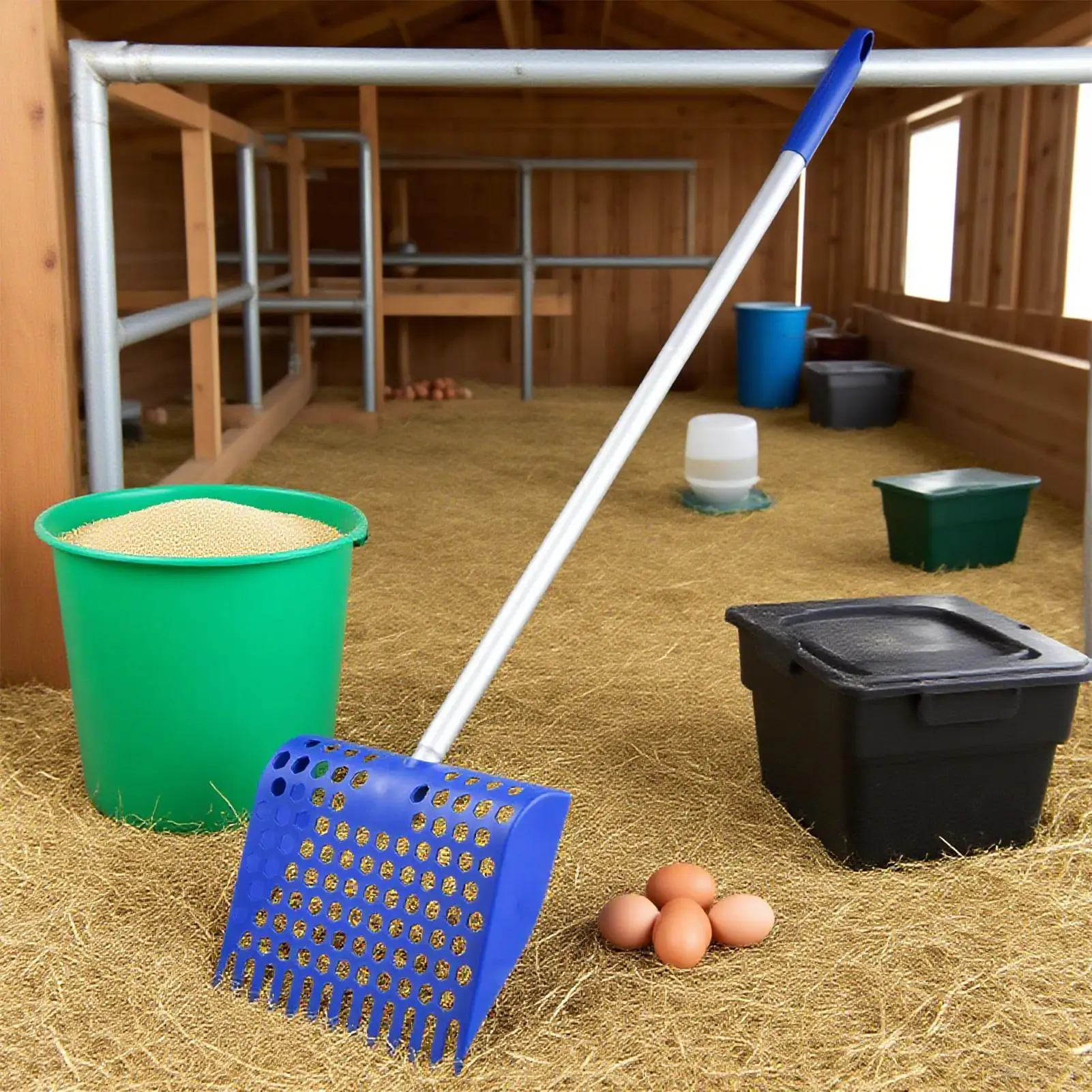 • Convenient Coop Maintenance: The integrated rake and shovel design allows for thorough waste collection and easy debris removal, enhancing cleaning efficiency.