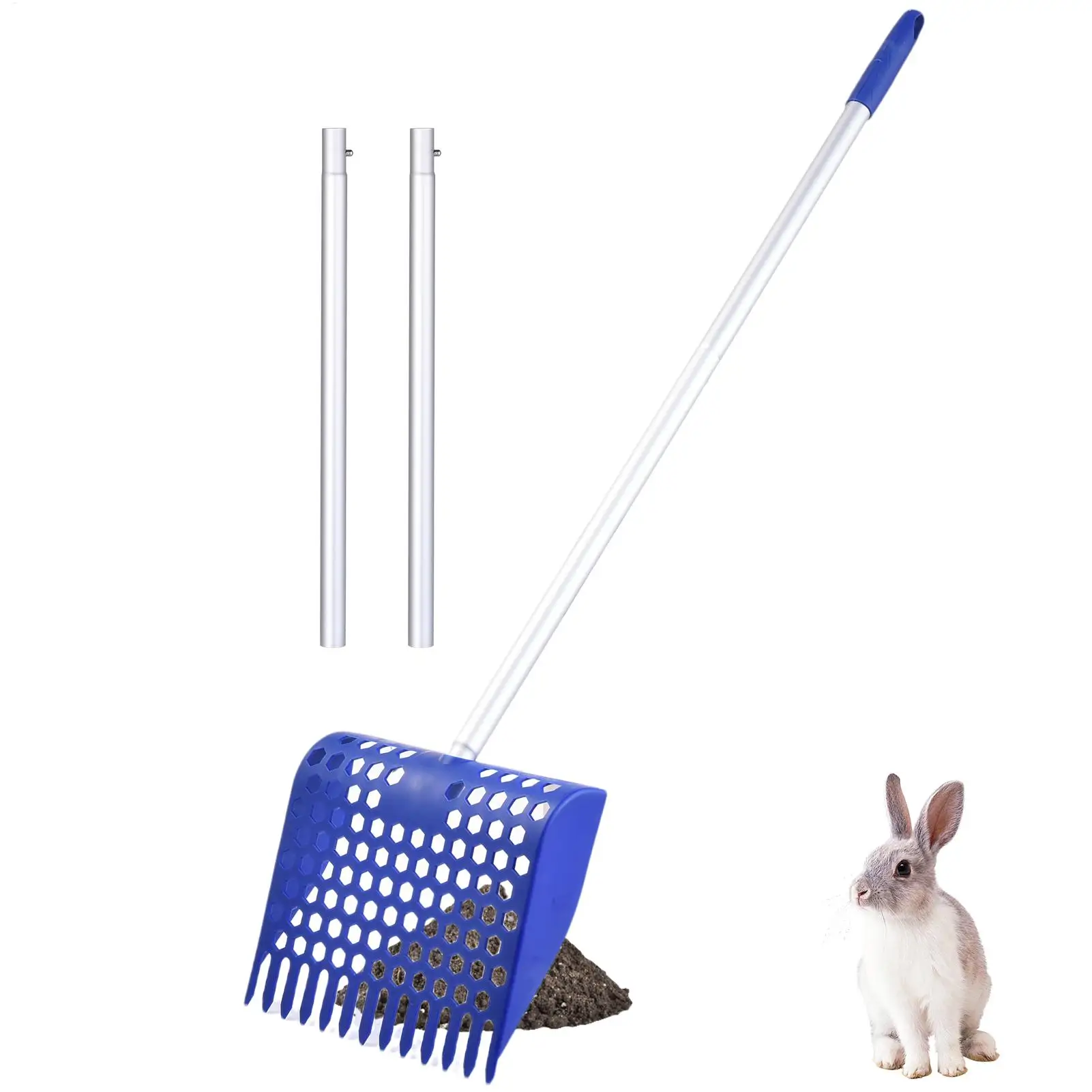 This extendable chicken poop scooper and rake is designed for efficient cleaning of chicken coops and other small livestock areas. Its innovative design combines a rake and shovel, making it easy to gather waste while sifting out debris, ensuring a cleaner environment for your animals.