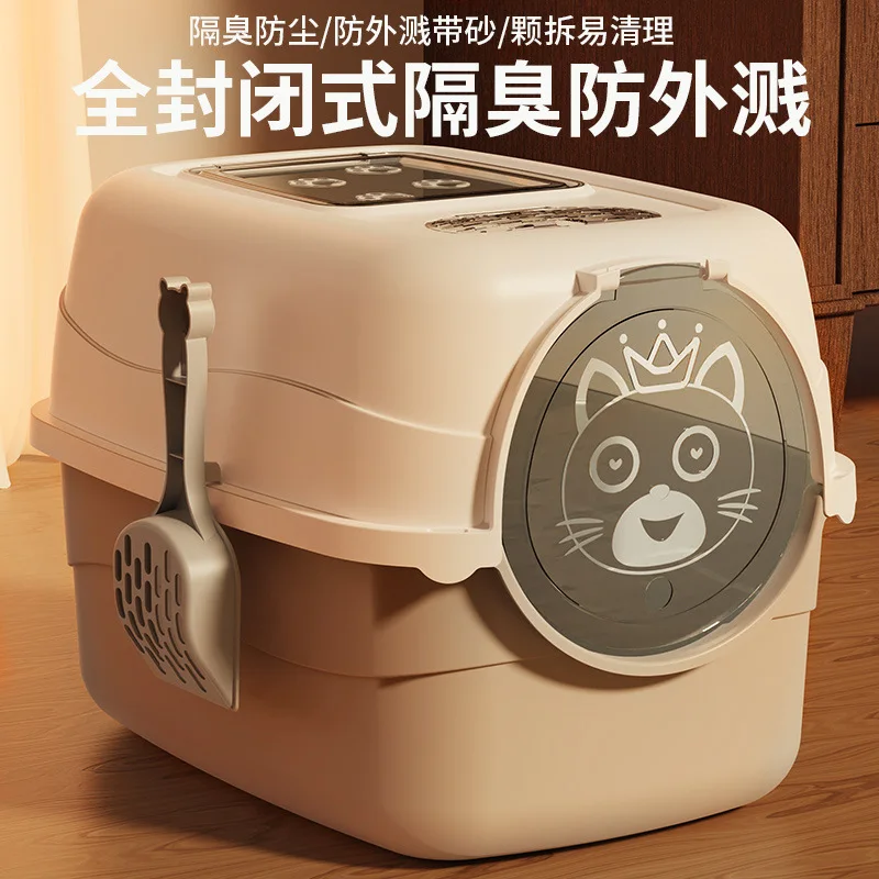 Extra Large Cat Litter Box Semi Enclosed Odor Control Anti Scatter Toilet