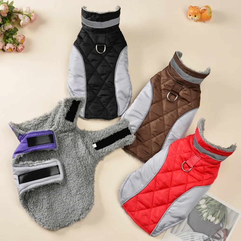 Fleece Warm Dog Clothes D-ring Thicken Reflective Pets Vest Coat Waterproof Plaid