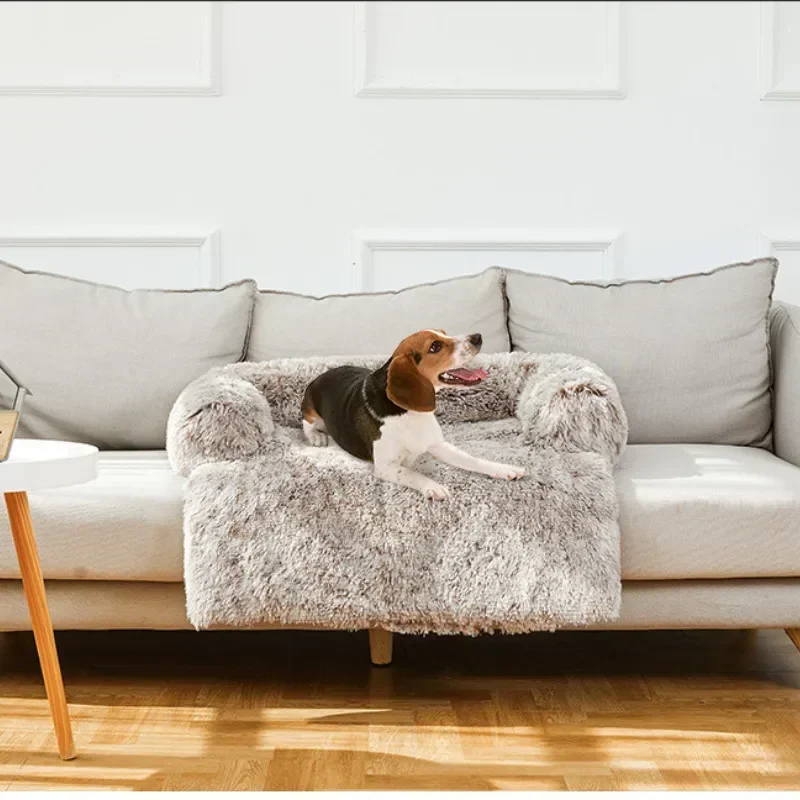 Fluffy Pet Sofa Bed Washable Winter Dog Bed and Cat Mat with Non-Slip Bottom