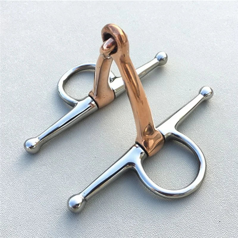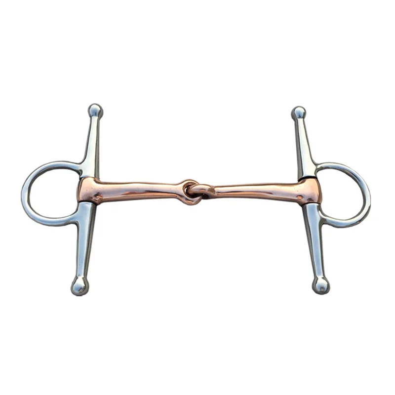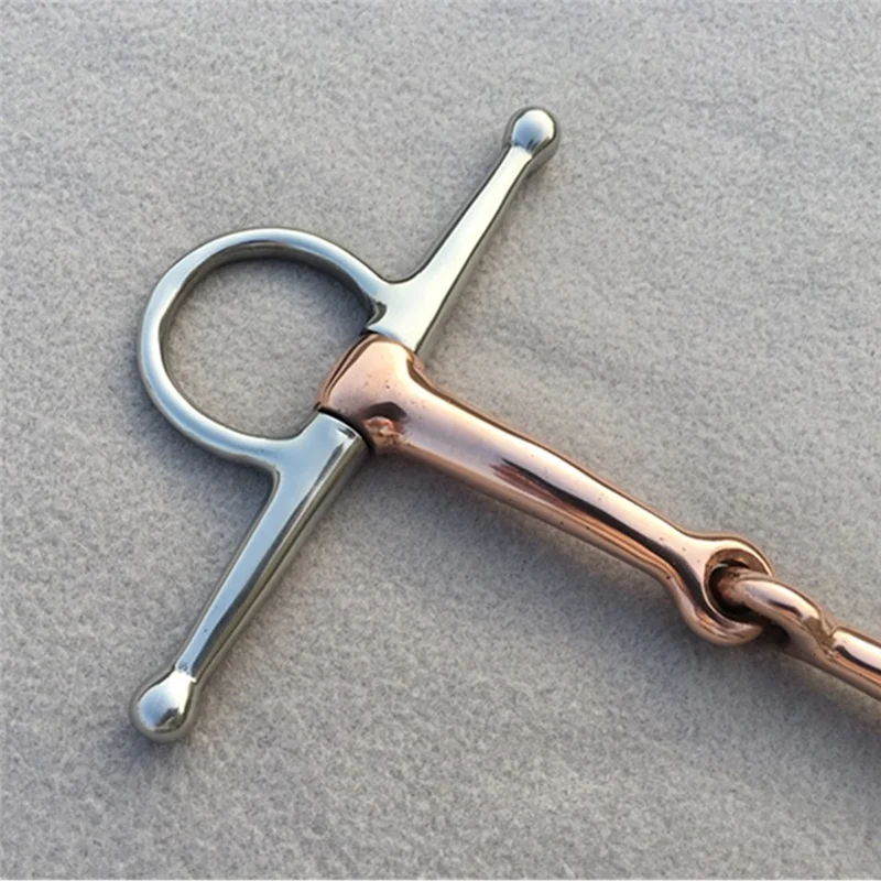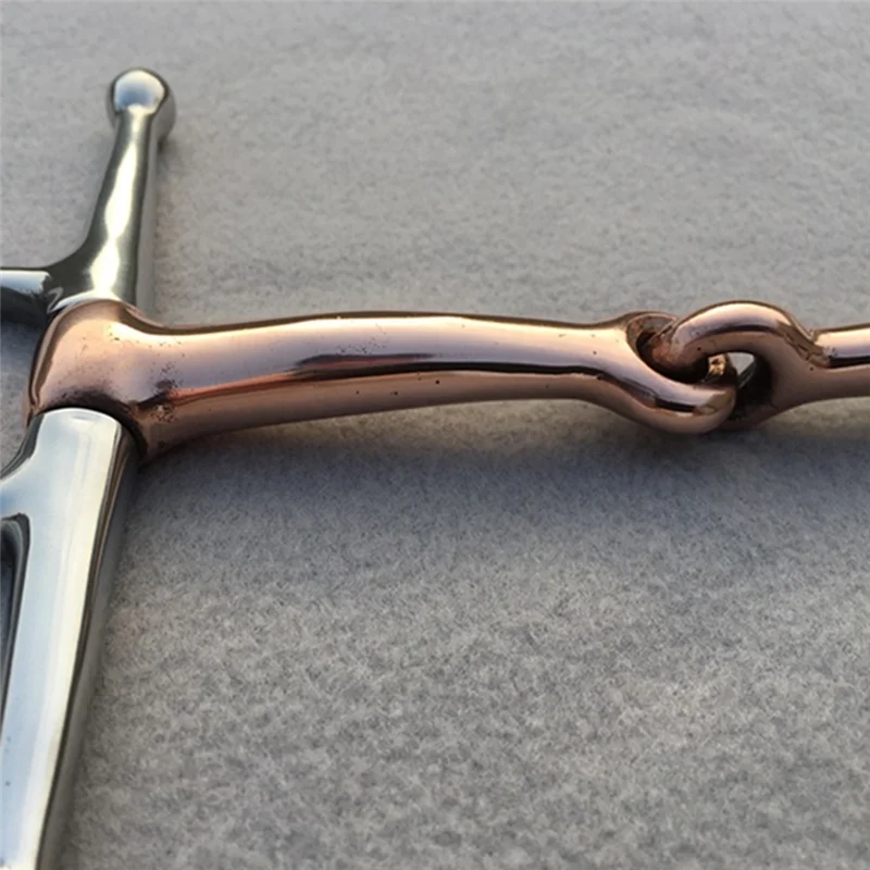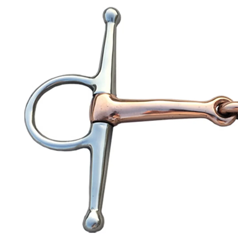 The Full Cheek Stainless Steel Equestrian Flexible D Ring Loose Set Horse Bit features a stainless steel mouthpiece with a copper center, designed for comfort and control while riding. This bit is hand polished for a smooth finish and is suitable for various equestrian activities.