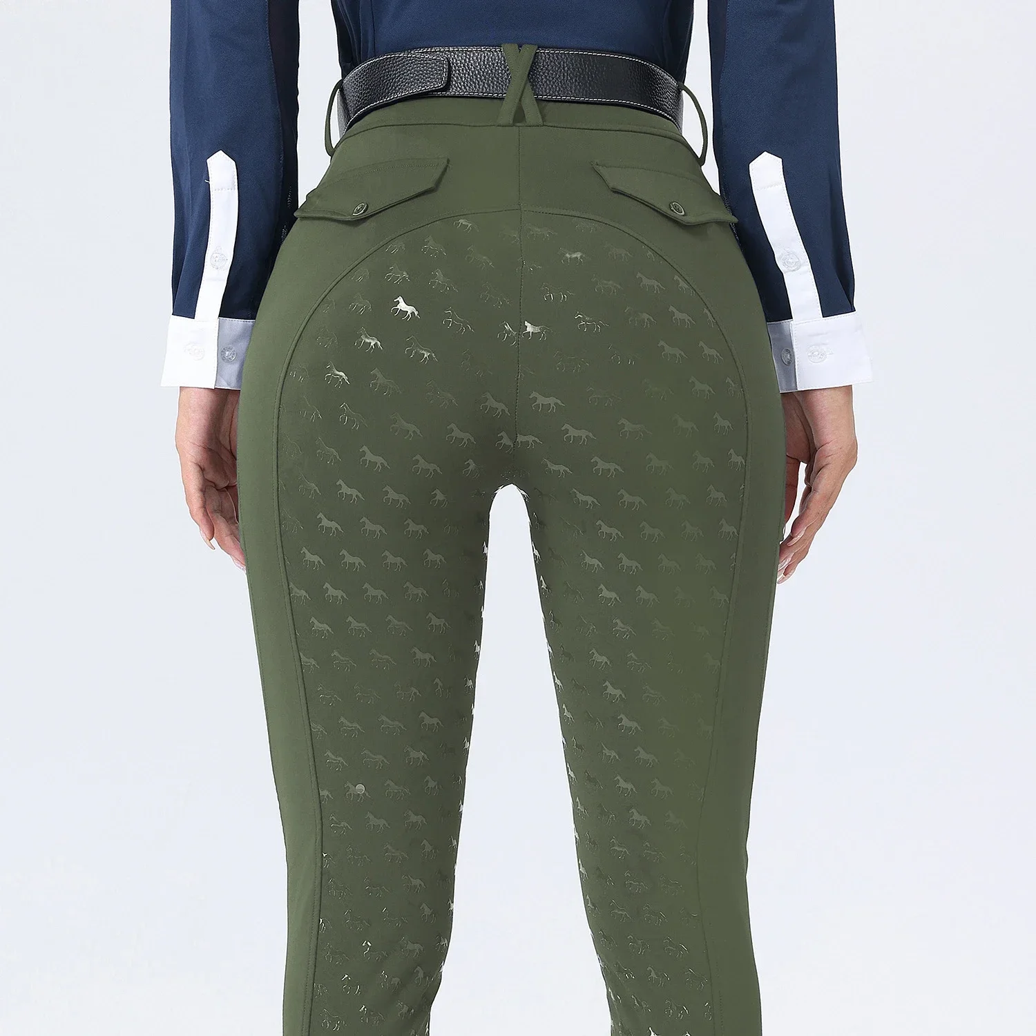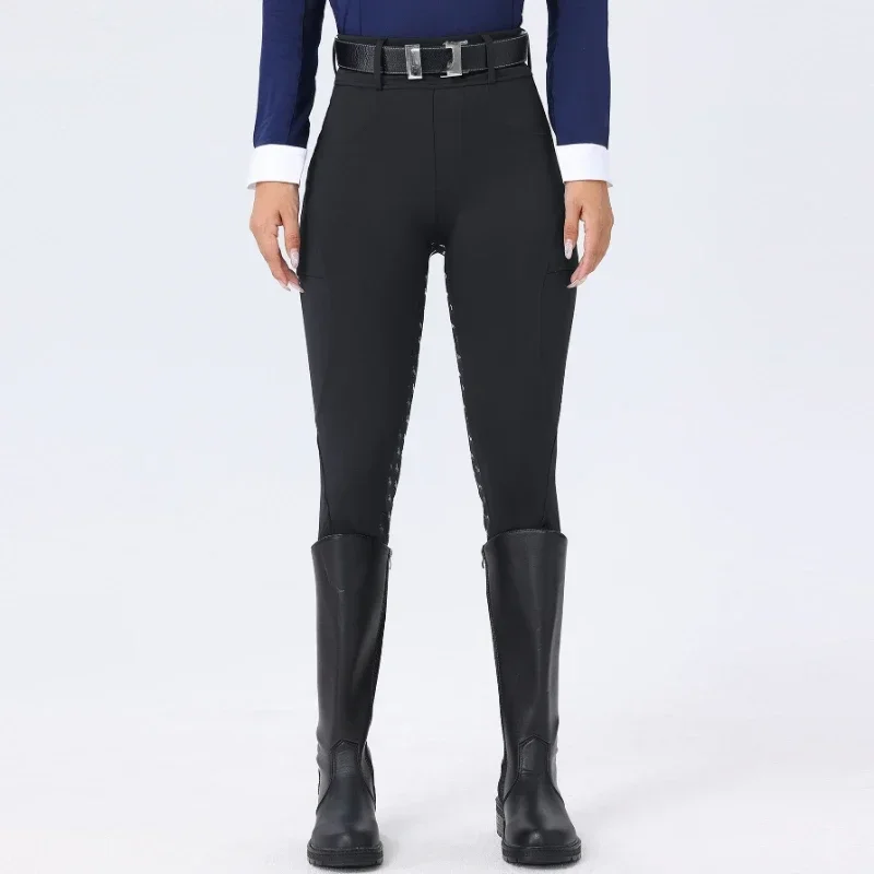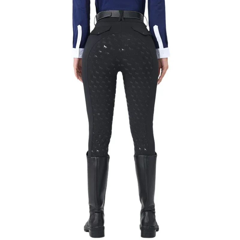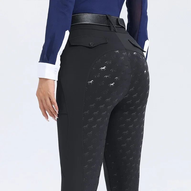 These Full Seat Silicone Equestrian Breeches are designed for comfort and performance in horse riding. Made for women, these anti-pilling tights provide a snug fit and excellent grip, making them ideal for equestrian activities.
