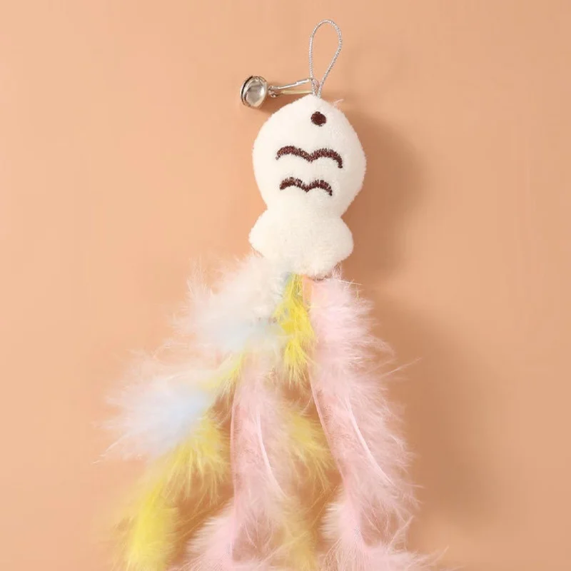 Funny Cat Toy Folorful Fluffy Feather With Bell Sucker Cat Stick Toy Kitten Play Interactive Detachable Teaser Wand Cat Supplies