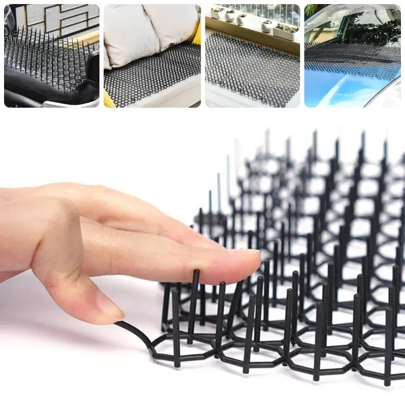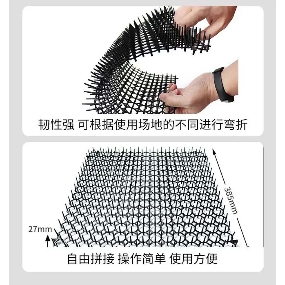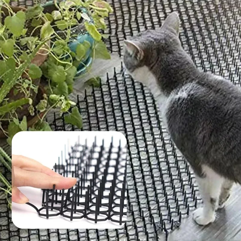 This repellent mat is designed to keep cats and dogs away from specific areas in your garden or home. The mat features plastic spikes that deter pets from entering unwanted spaces, making it an effective solution for containment without causing harm.