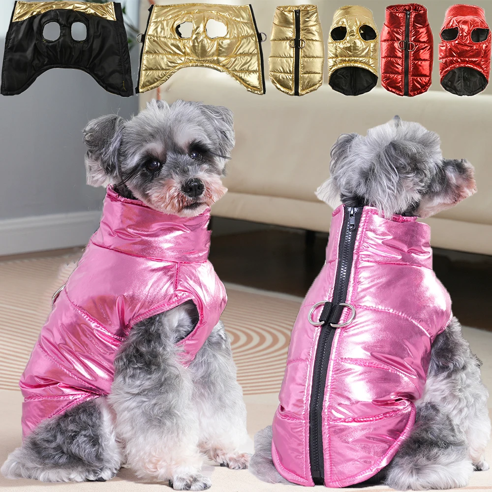 This stylish dog coat is designed to keep your pet warm during the colder months. It features a high collar and a sleeveless design, making it comfortable for your furry friend. The coat is equipped with a D-ring zipper for easy wear and removal, ensuring a snug fit for small to medium-sized dogs and cats.