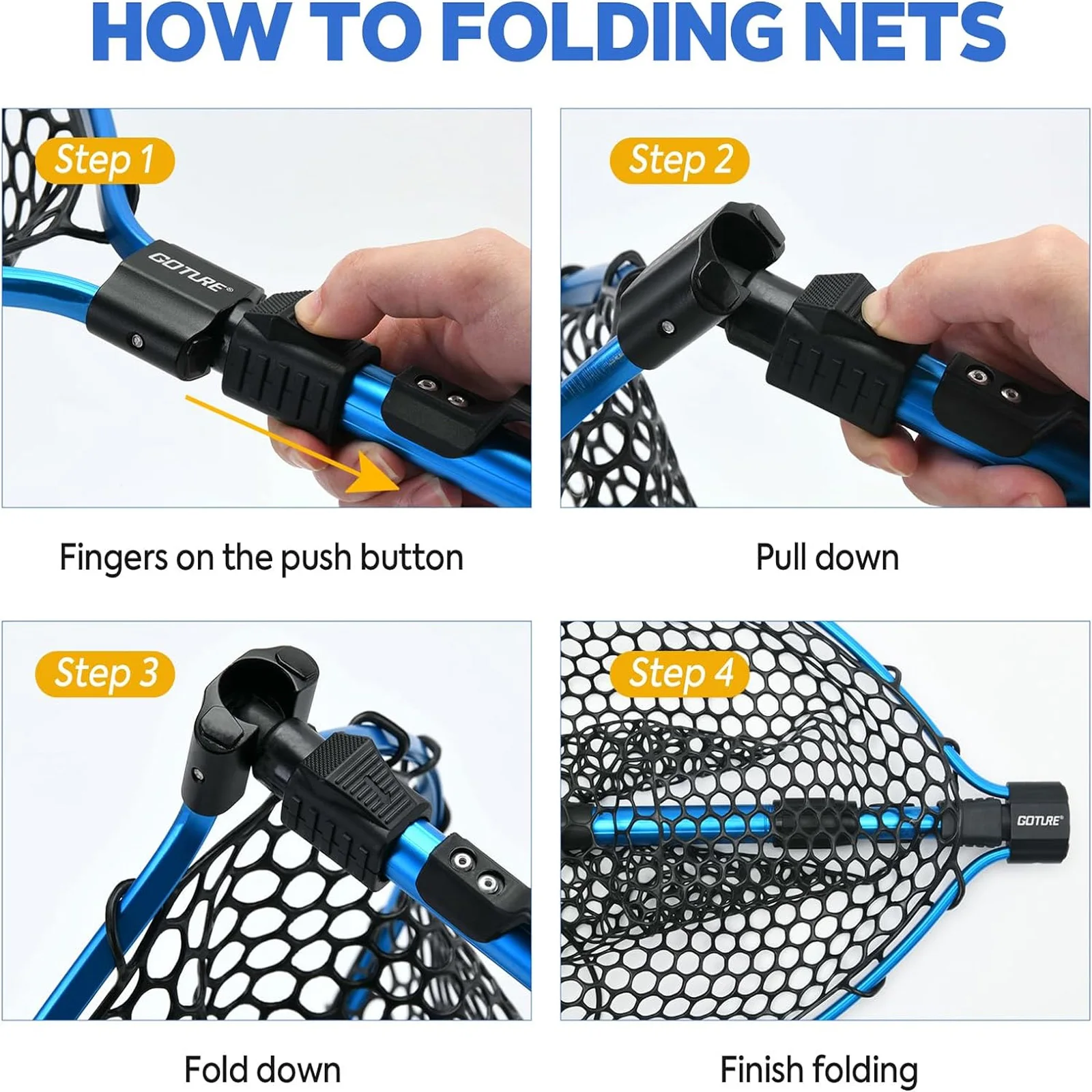 This Goture Fishing Landing Net is designed for anglers seeking a lightweight and portable solution for landing fish. With its foldable design, it is easy to carry and store, making it an essential tool for fishing enthusiasts.