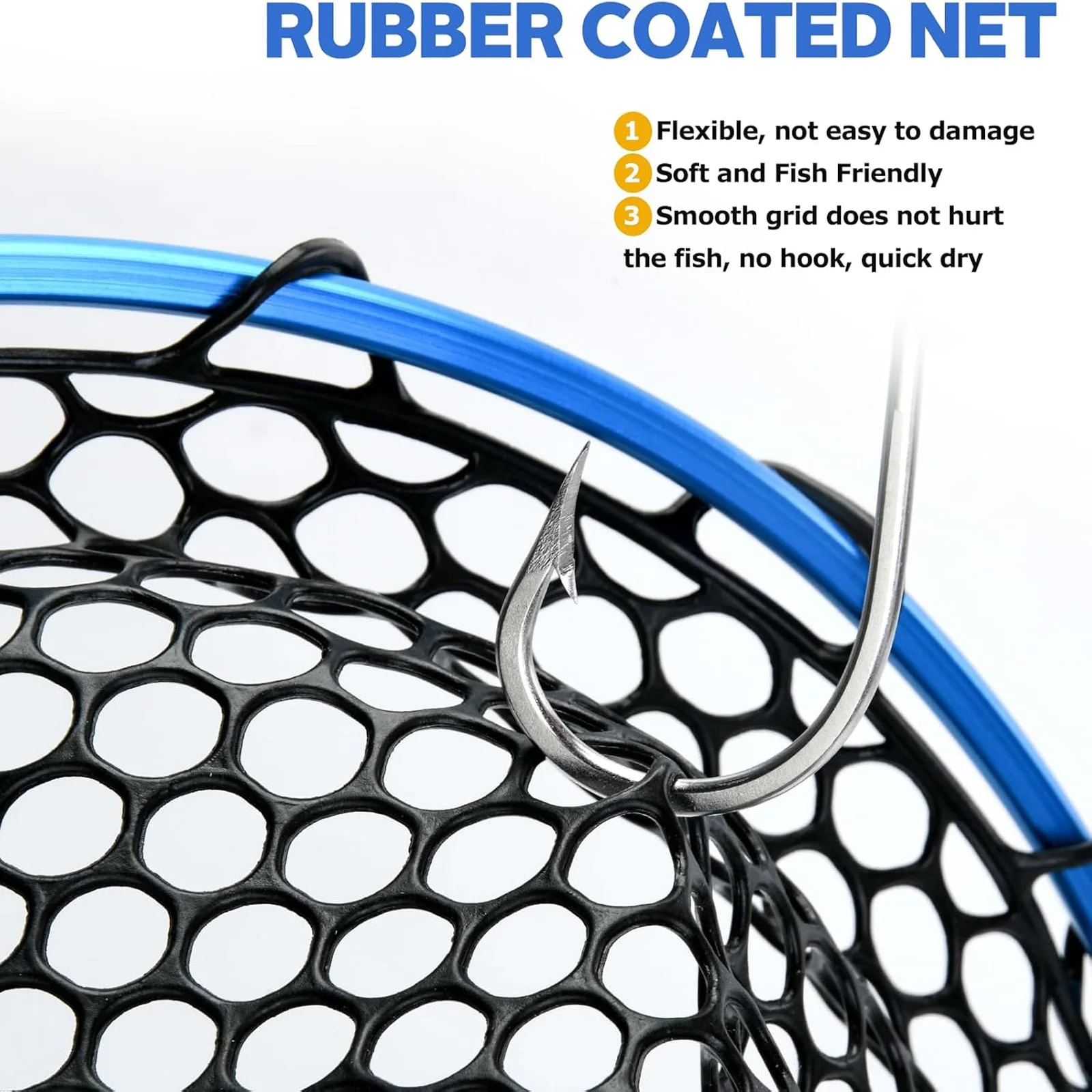 - Fish-Friendly: Made with high-quality rubber mesh, it is flexible and durable, preventing harm to fish and avoiding entanglement with hooks. The quick-drying and odor-resistant material ensures a hygienic fishing experience.
