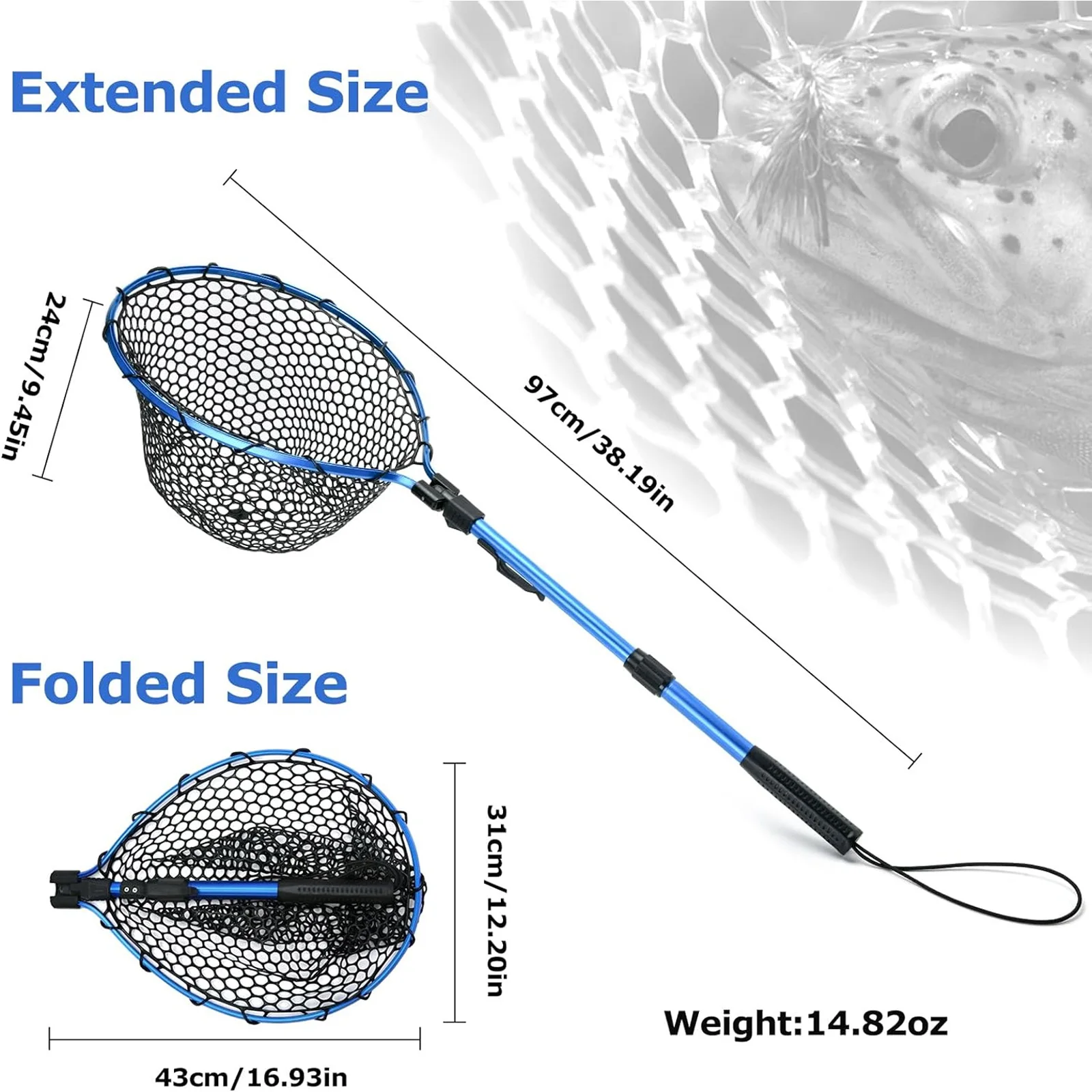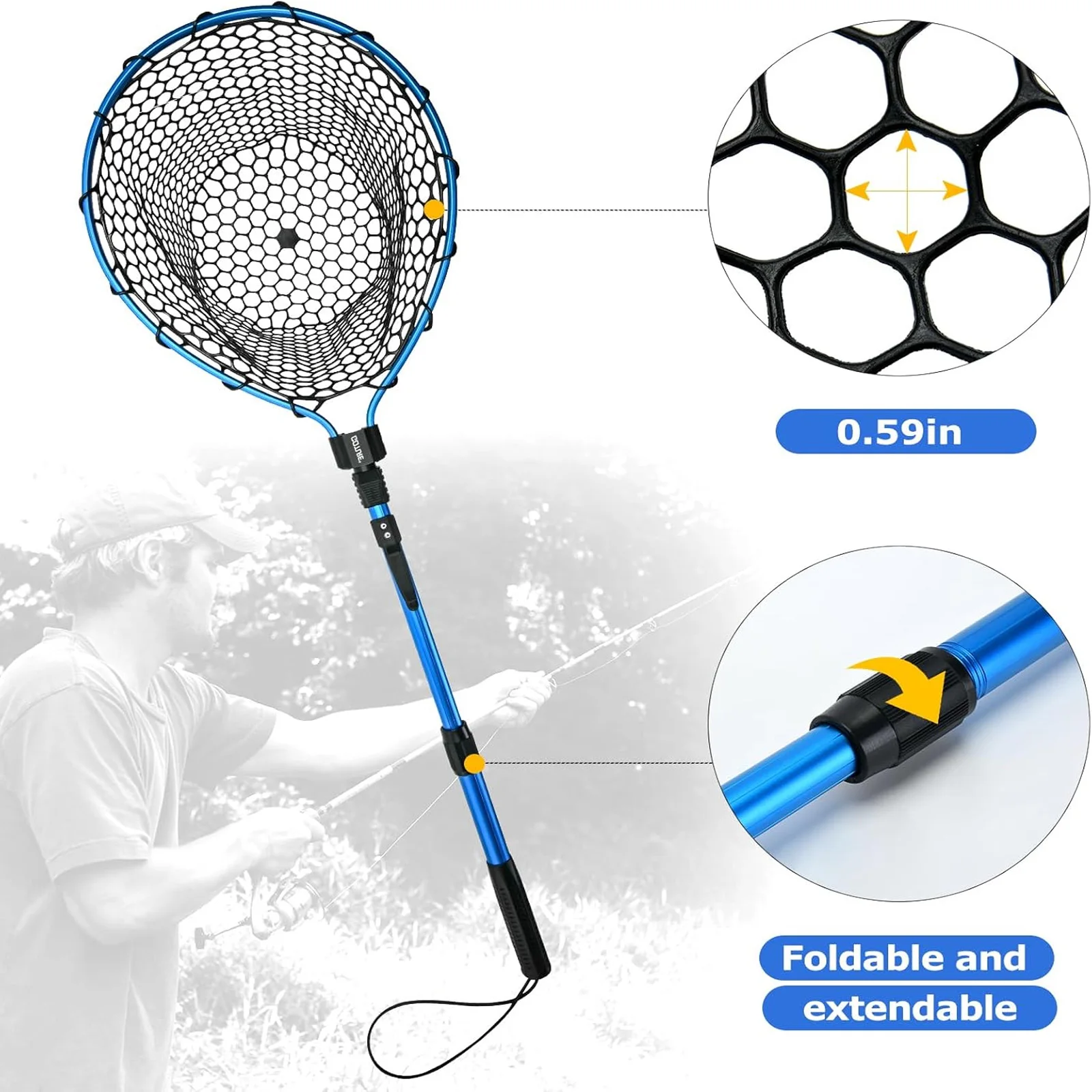 - Easy to Use: The net unfolds to approximately 38.19in, providing ample reach. With a net depth of approximately 9.45in and a mesh diameter of approximately 0.59in, it securely captures fish without tangling.